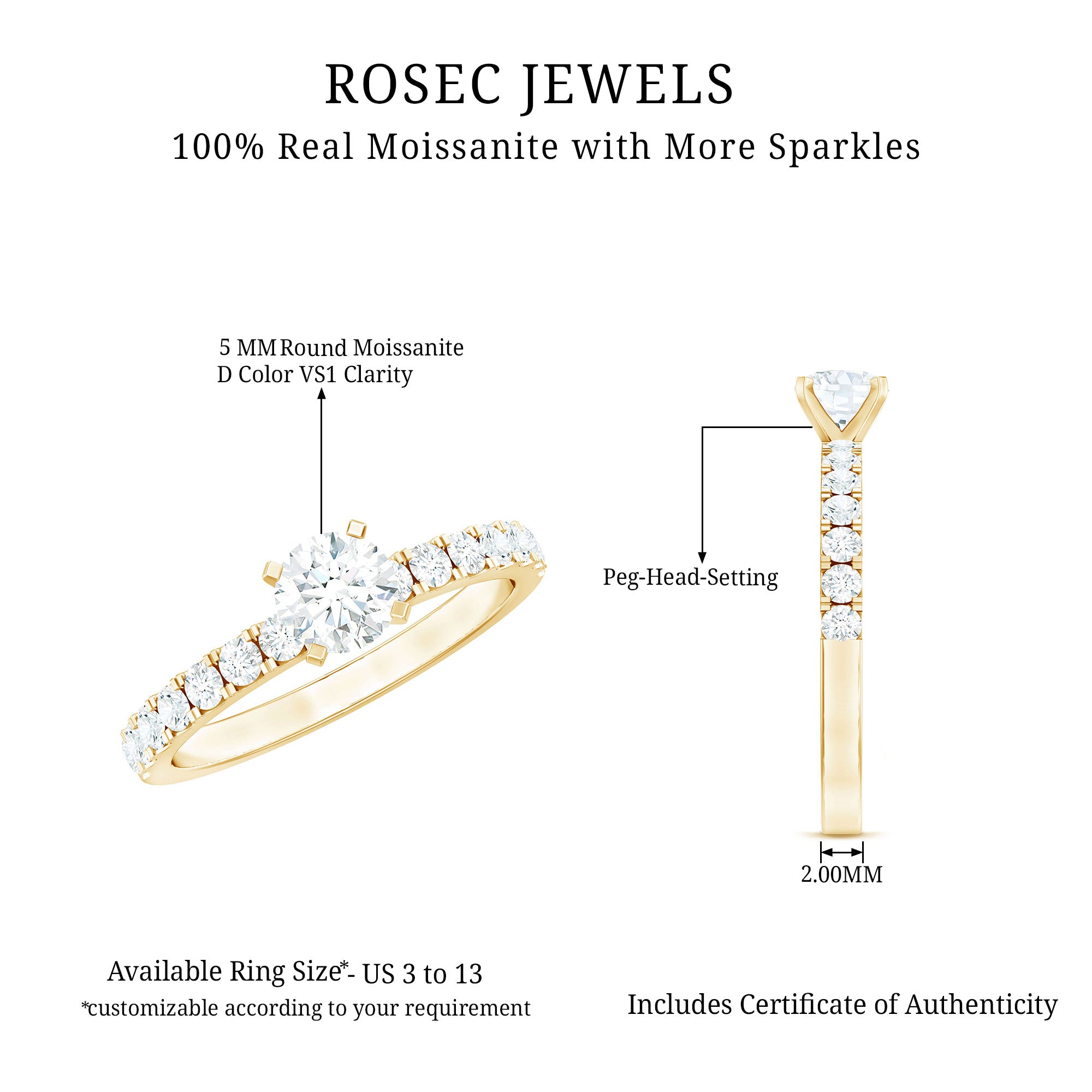 Certified 5 MM Moissanite Traditional Engagement Ring with Side Stones