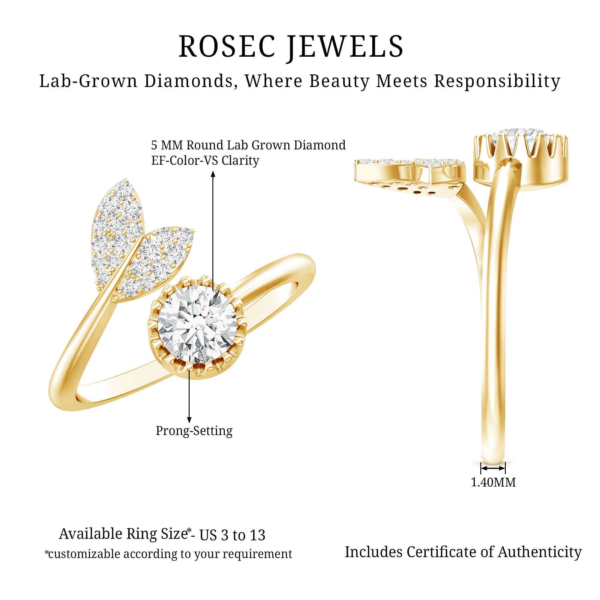 Certified 5 MM Round Lab Grown Diamond Tail Cuff Ring