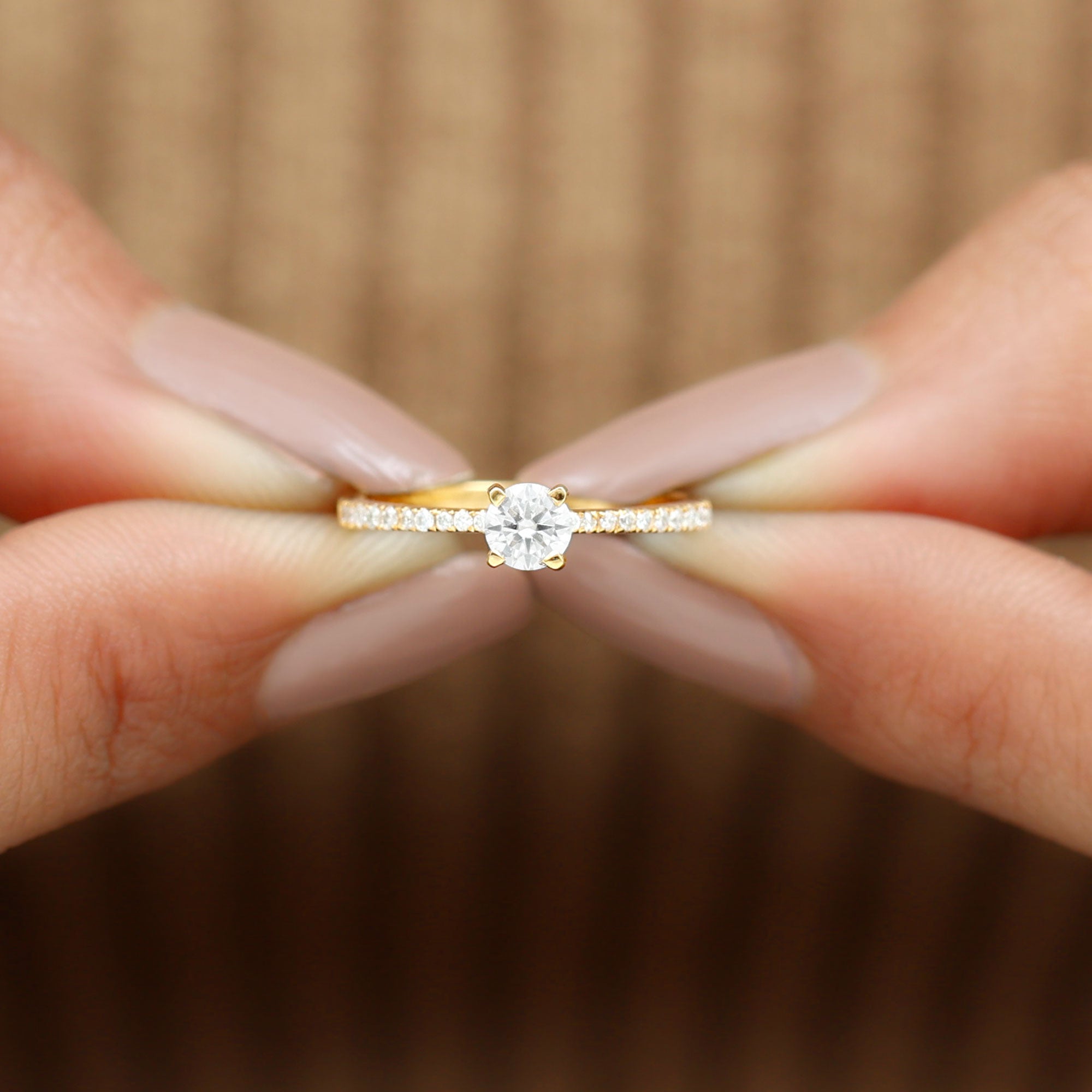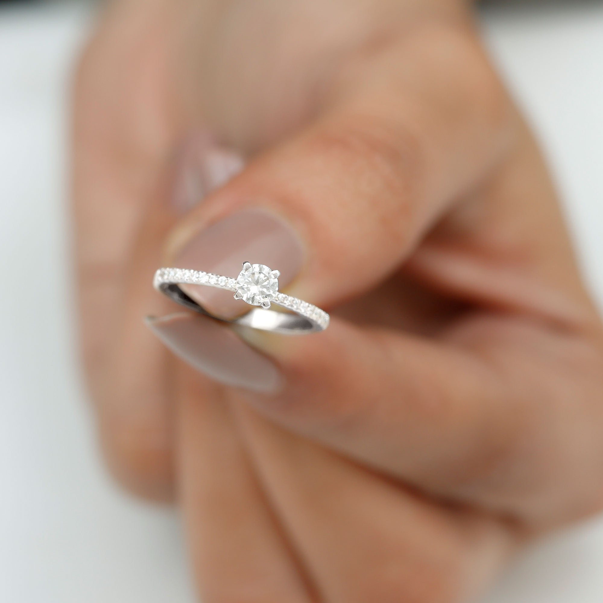 Certified 5 MM Round Moissanite Solitaire Promise Ring