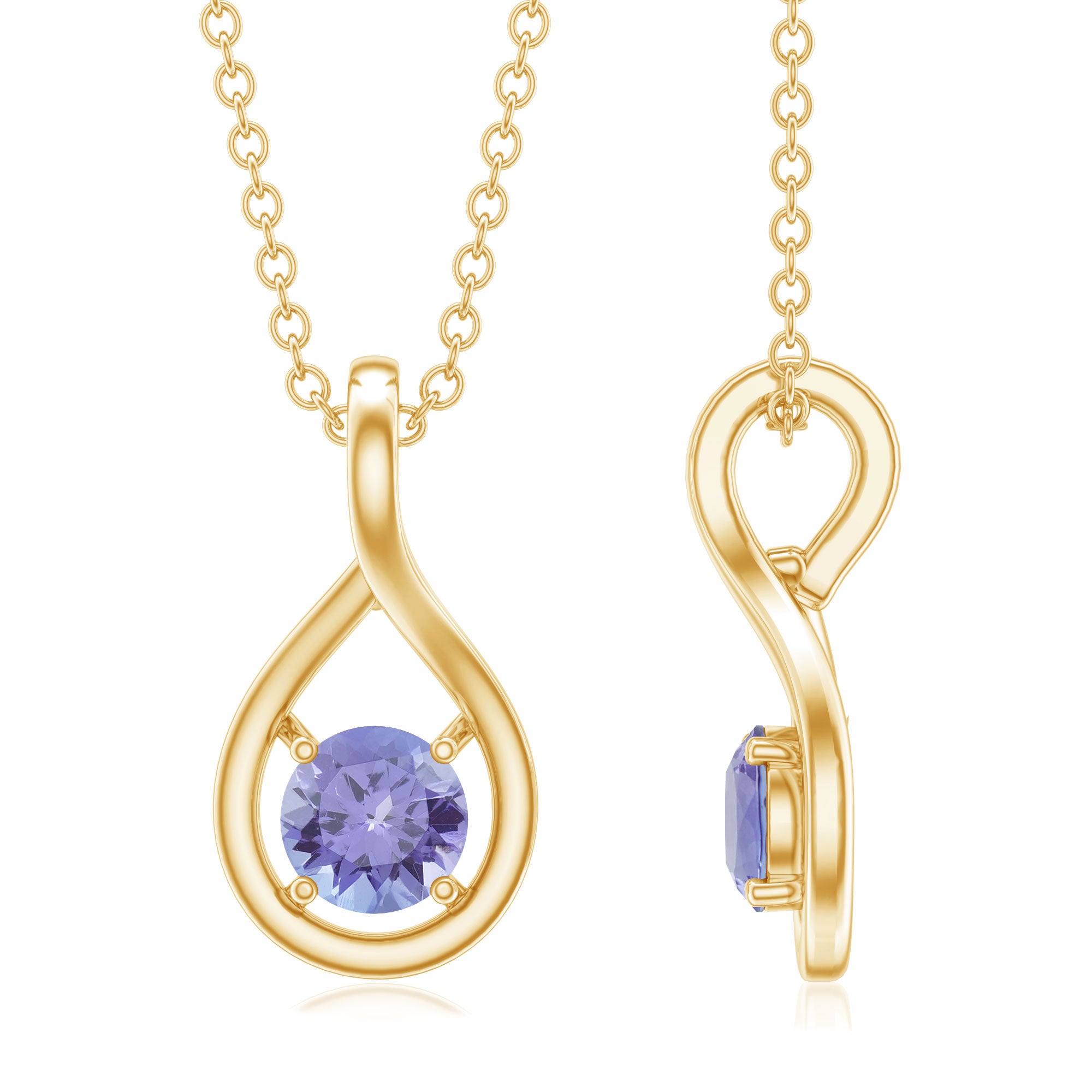 Certified 5 MM Round Tanzanite Teardrop Pendant