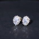 Make your presence noticed with these CZ Stud Earrings, crafted in 925 Sterling Silver with white gold plating. The big earrings feature a 5X7 MM Oval Shape Zirconia secured in Prong Setting and encircled by a Halo of Smaller stones that dazzle the appearance. These Halo Earrings have a screw back closure that keeps them safe and secure throughout the day. These Zircon Earrings can be an ideal gifting option for your lady love on the special occasions such as anniversary or birthday. The adorable shine of AAAAA Quality Zircon which makes these earrings perfect to be worn with special day fits. The earrings are shipped to you in a premium packaging securely kept in a signature jewelry pouch.