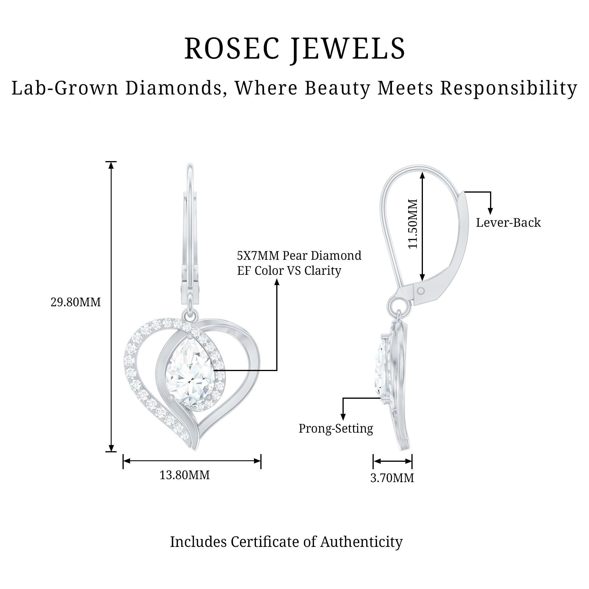 Certified 5X7MM Pear Lab Grown Diamond Heart Drop Earrings