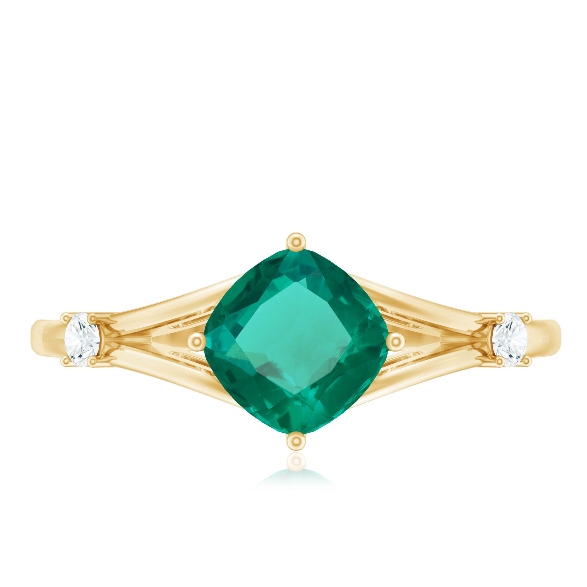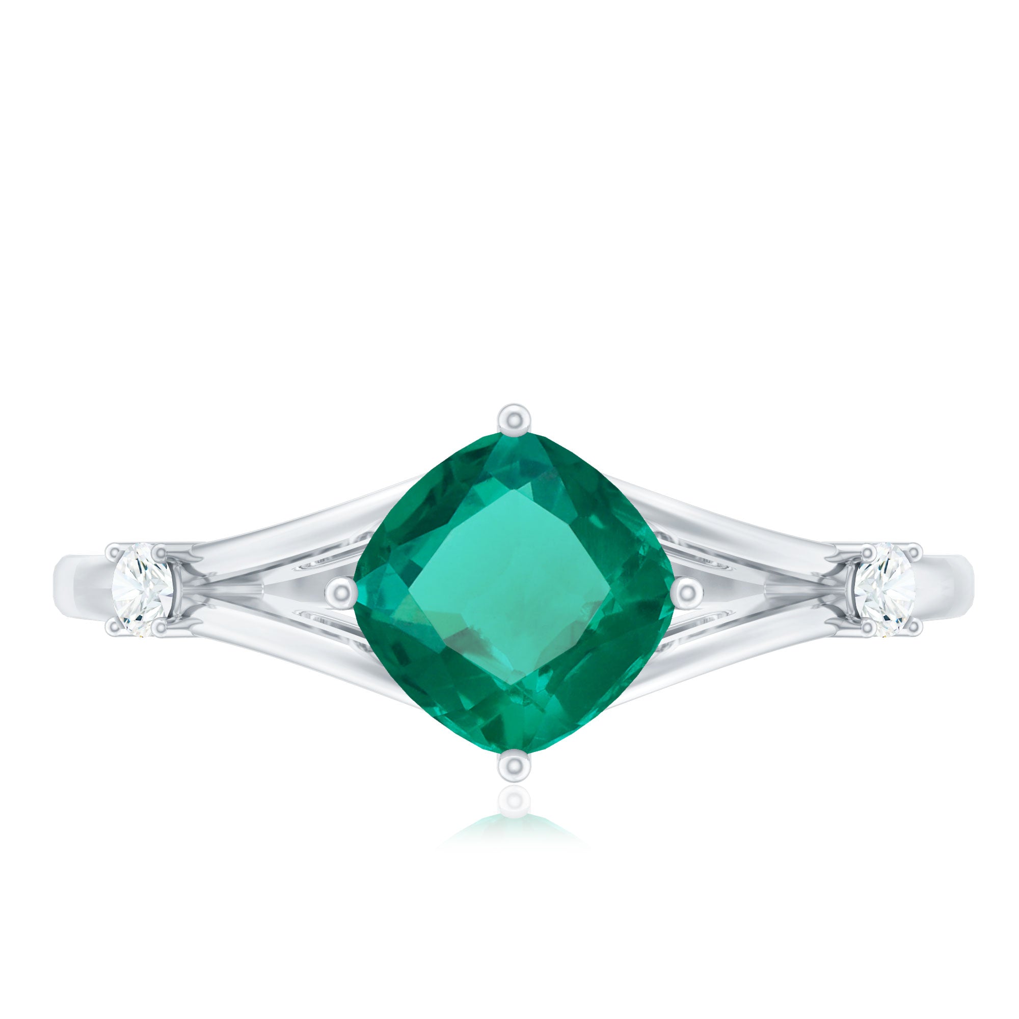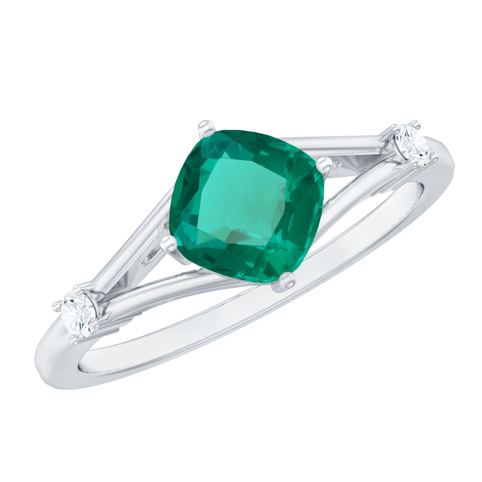 Certified 6 mm Cushion Cut Lab Grown Emerald Diamond Engagement Ring with Split Shank