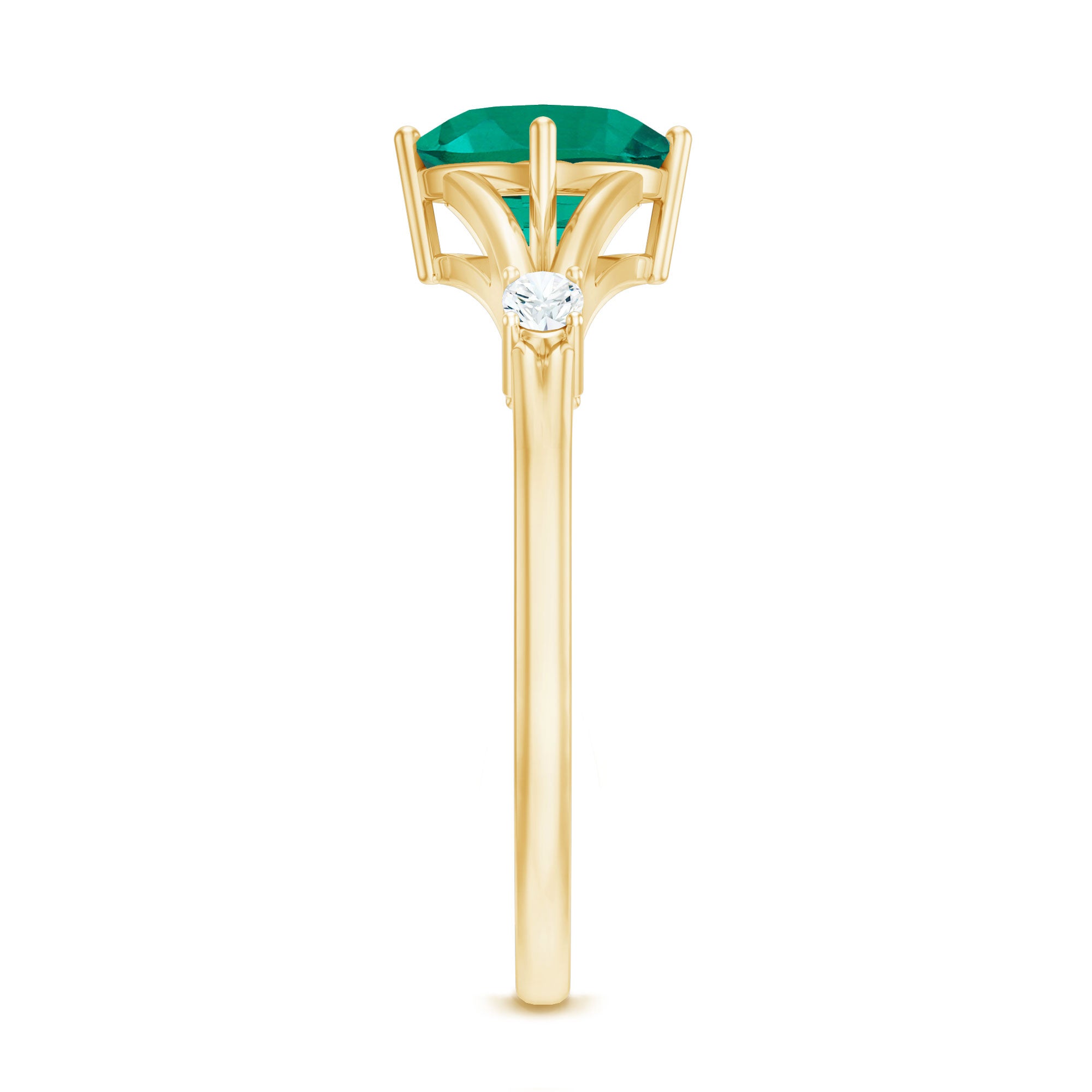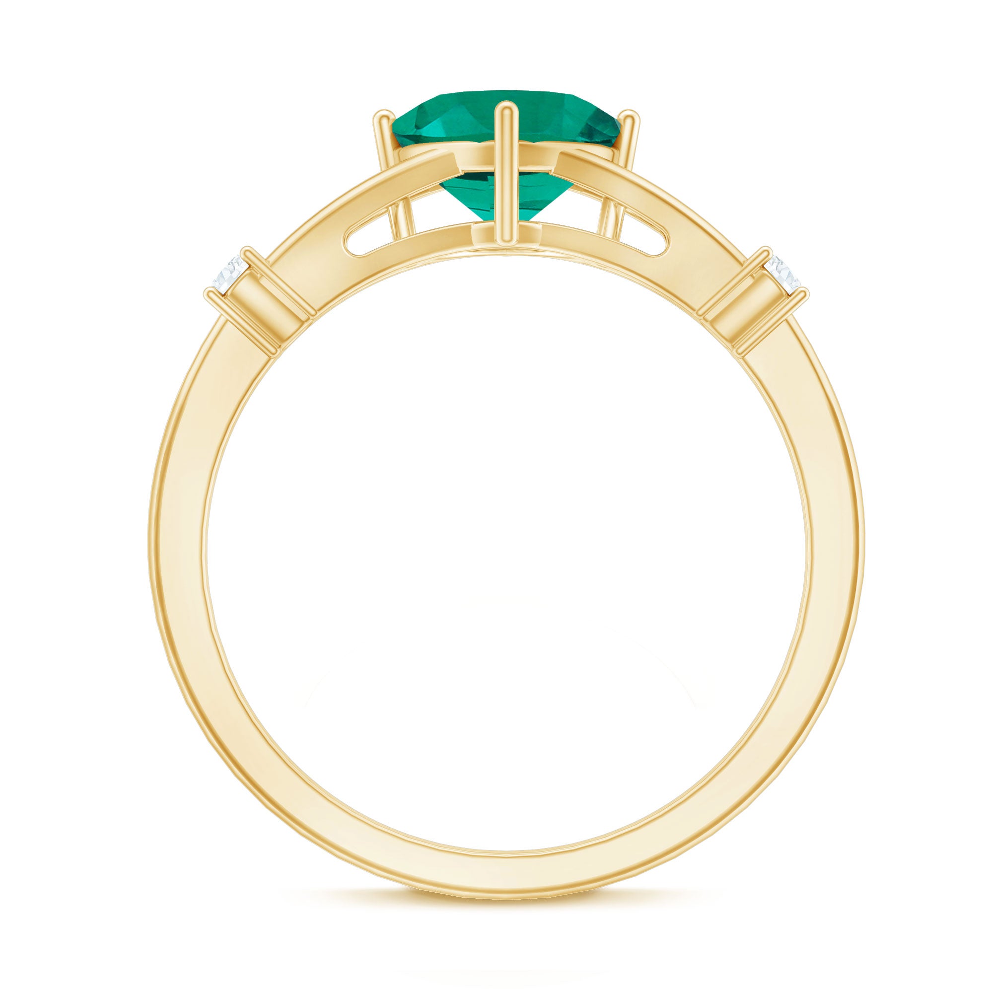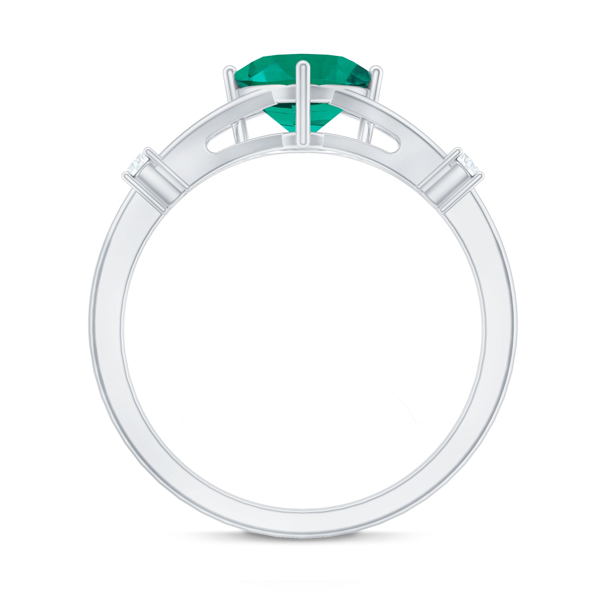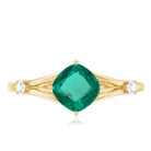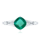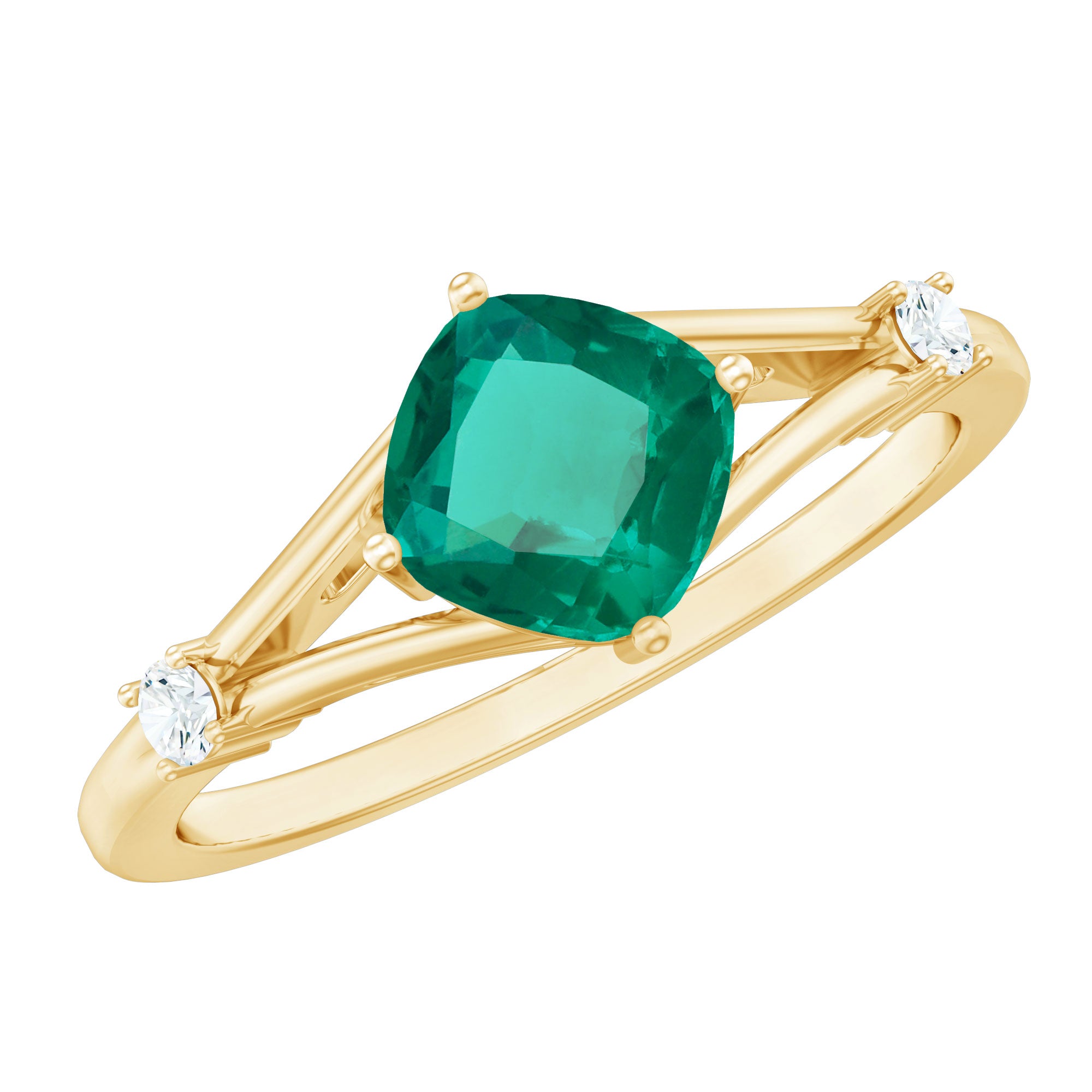 A fresh take on classic elegance, this Cushion Cut Engagement Ring is a perfect blend of modern sophistication and natural beauty. Handcrafted with perfection and attention to detail, this Solitaire Ring for Engagement features a captivating 6 mm Cushion Cut Lab Created Emerald, placed in 4 Prong Diagonal Setting for a unique, eye-catching look that sets this Lab Grown Emerald Ring apart. The vibrant green hue of Lab Emerald symbolizes renewal and growth, making it a meaningful choice for a love that is always evolving. Flanking the center stone are sparkling Diamond stones, one placed on each side at the start of the split shank. The sleek design of the band draws attention to the stones without overwhelming, allowing the AAAA Quality Lab Emerald and HI-SI Diamond to shine in perfect harmony. This Split Shank Engagement Ring is ideal for the woman who wants something different, a ring that is as unique and beautiful as her love story. It combines modern flair with timeless elegance, making it a standout piece that will be cherished forever. Presented in a luxurious jewelry box and available in various sizes, this Engagement Ring with Emerald is ready to symbolize your forever.
