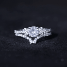 Designed to captivate hearts, this Diamond Wedding Ring Set has timeless beauty with spectacular sparkle. It has a 6 MM cushion cut diamond engagement ring with side stones set in secure prong setting and a unique enhancer ring embellished with smaller diamonds, adding designer elements to the overall design. All the Ef-Vs quality diamonds are lab grown and this Bridal Ring Set comes with a certificate of authenticity to ensure you get great value for your money. Adore your future bride with this stunning Diamond Engagement Ring Set, and watch as her eyes fill with joy and happiness.
