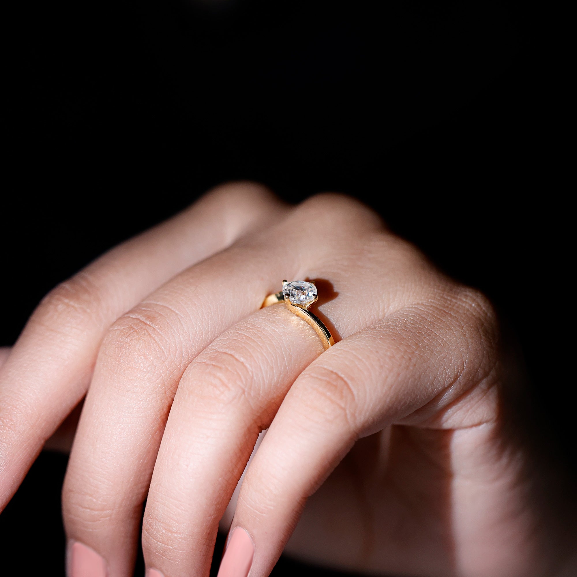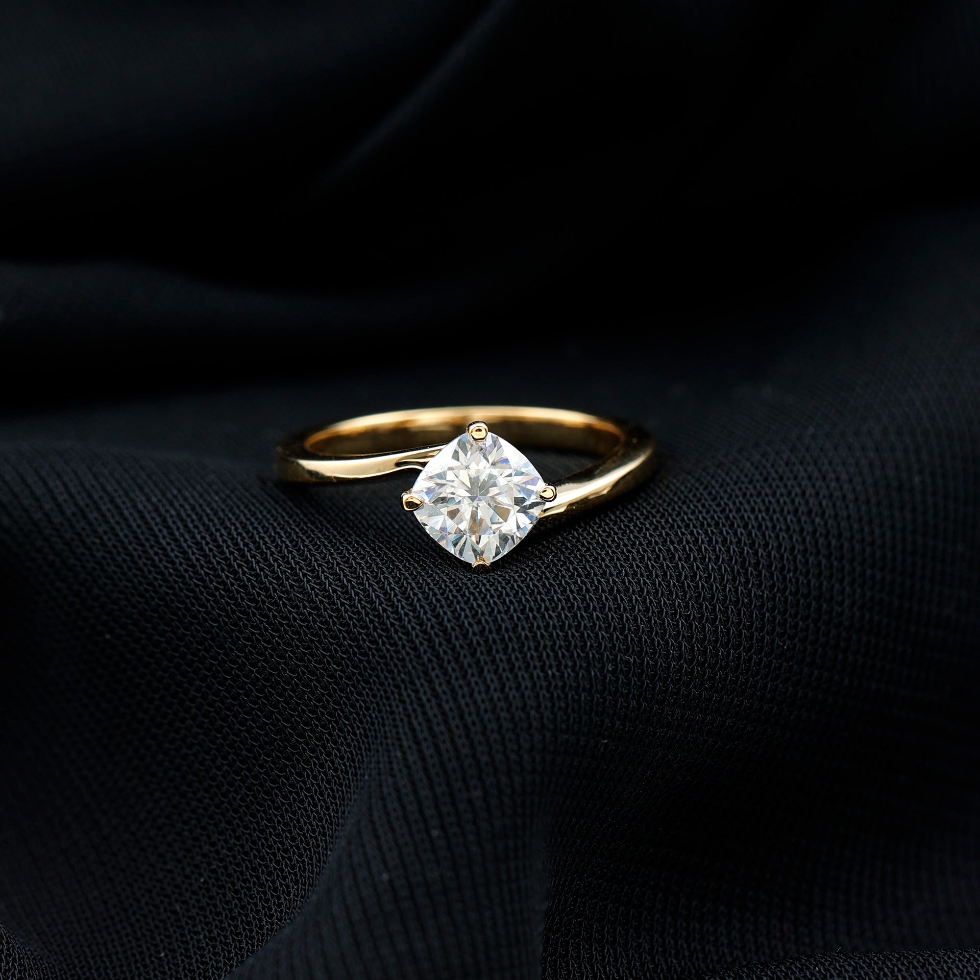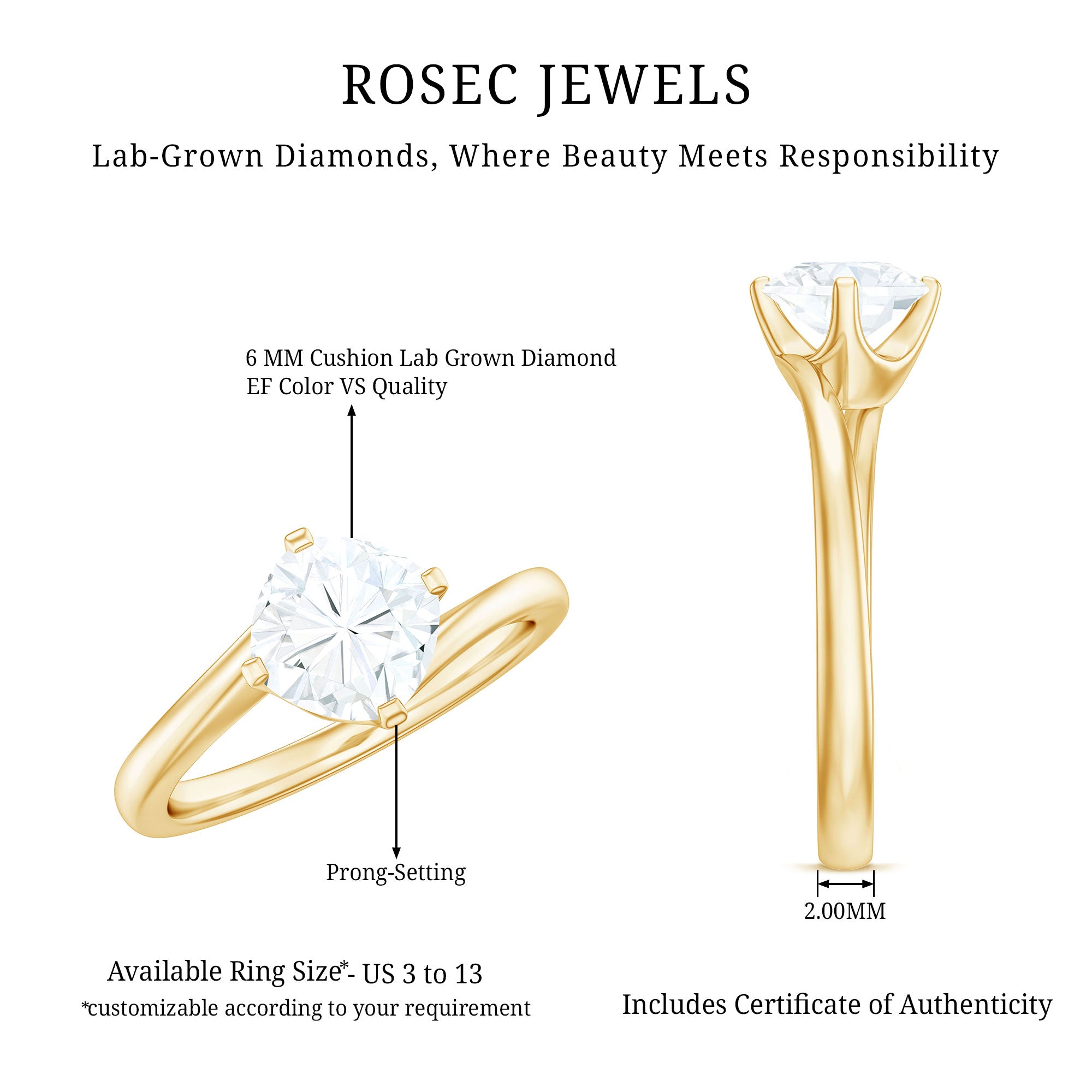 This Lab Grown Diamond Ring is a timeless choice that combines elegance with a hint of vintage charm. With versatility and a bypass design, this Lab Diamond Engagement Ring has a simple band with a timeless look. Adorned with 6 MM Cushion Cut Lab Grown Diamond in Prong Setting as Solitaire truly emphasizes its beauty and individuality. This Solitaire Diamond Ring embodies a classic appeal with a contemporary twist making a stunning choice for the combination of design, creating a sophisticated and distinctive look. This exquisite and breathtaking Lab Diamond Ring has a captivating and timeless beauty that elevates the overall aesthetics.