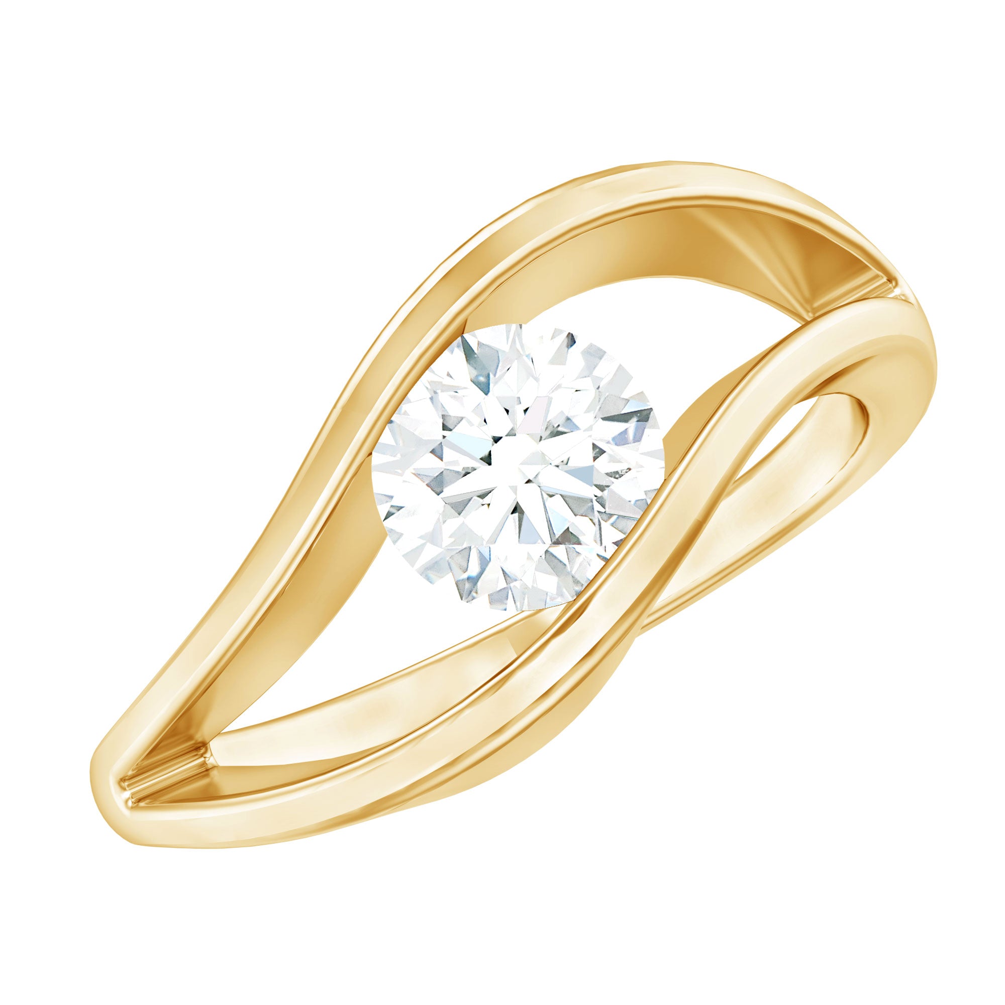 Just like the endless curves of destiny that brings two hearts together, this Solitaire Diamond Engagement Ring is designed to represent the beautiful journey of love. Its flowing, wave-like band gracefully wraps around the finger, symbolizing how love finds its way - smoothly, unexpectedly, and perfectly. This Curved Engagement Ring is embellished with a 6 MM round cut lab grown diamond held securely in tension mount setting that creates a breathtaking illusion as if the stone is floating. Its modern design is timeless, crafted for those who want something meaningful, distinctive, and absolutely unforgettable. Whether you are bending down on one knee for the most romantic proposal or simply celebrating your love story, this Lab Grown Diamond Ring makes the moment unforgettable. Plus, it comes in various metal colors and purity options, allowing you to pick what best fits your style. For that special someone who adores glamour, this Round Diamond Ring is the ideal gift for her special day. To guarantee its quality, it comes with a certificate of authenticity, giving you peace of mind. A Diamond Proposal Ring that speaks without words, symbolizing the powerful beauty of loves perfect curve.