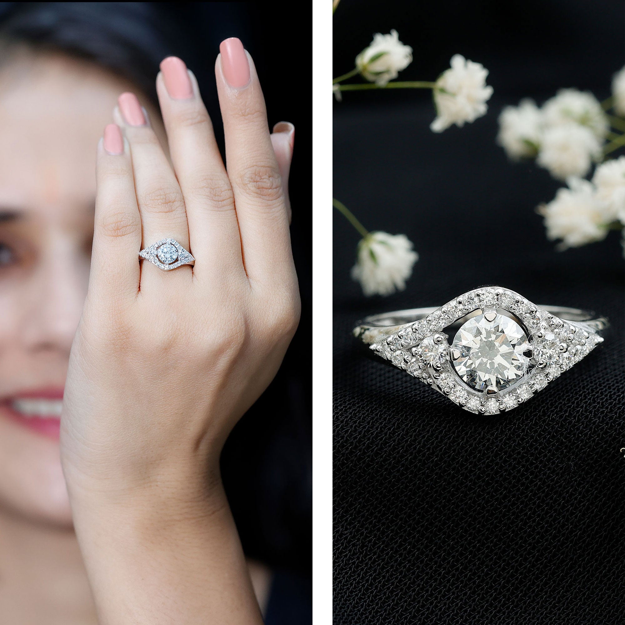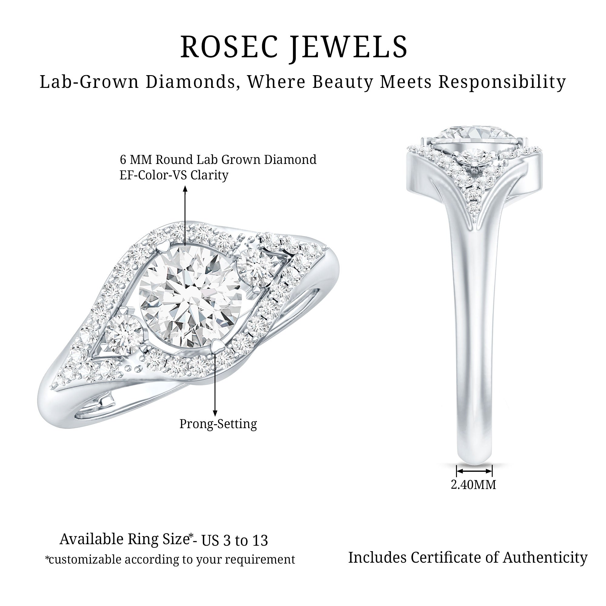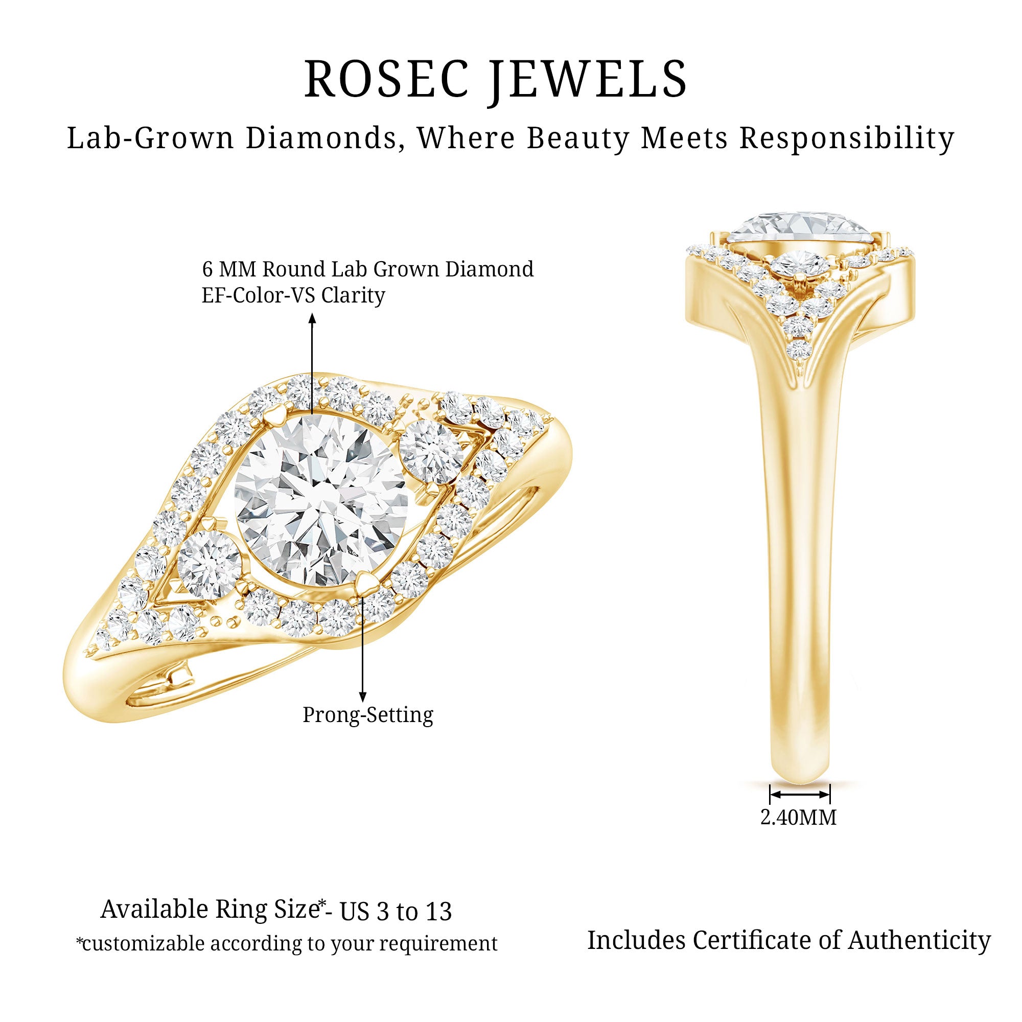 Celebrate that incredible love with this elegant lab grown Diamond Engagement Ring. An approximately 1 carat diamond of round shape shines at the center, accompanied by more sparkling round gemstones over the band. The Classic Engagement Ring is styled in top-notch metal, and the diamonds total 1.25 carats in weight nearby. Two round diamonds are set in the profile to complete the look and also add an extra touch of sparkle to the design. Whether she adores classic beauty or bold fashion statement, this Round Diamond Ring will complement her style effortlessly. Also, our jewelry pieces come in the appropriate packaging ensuring they are ready for presentation upon arrival.