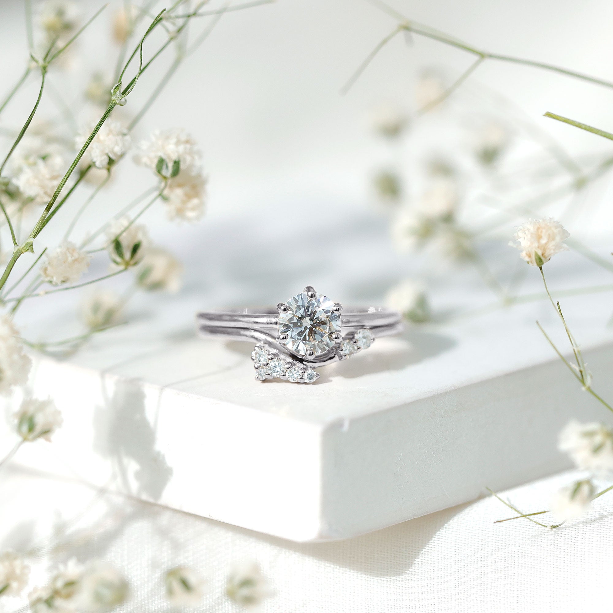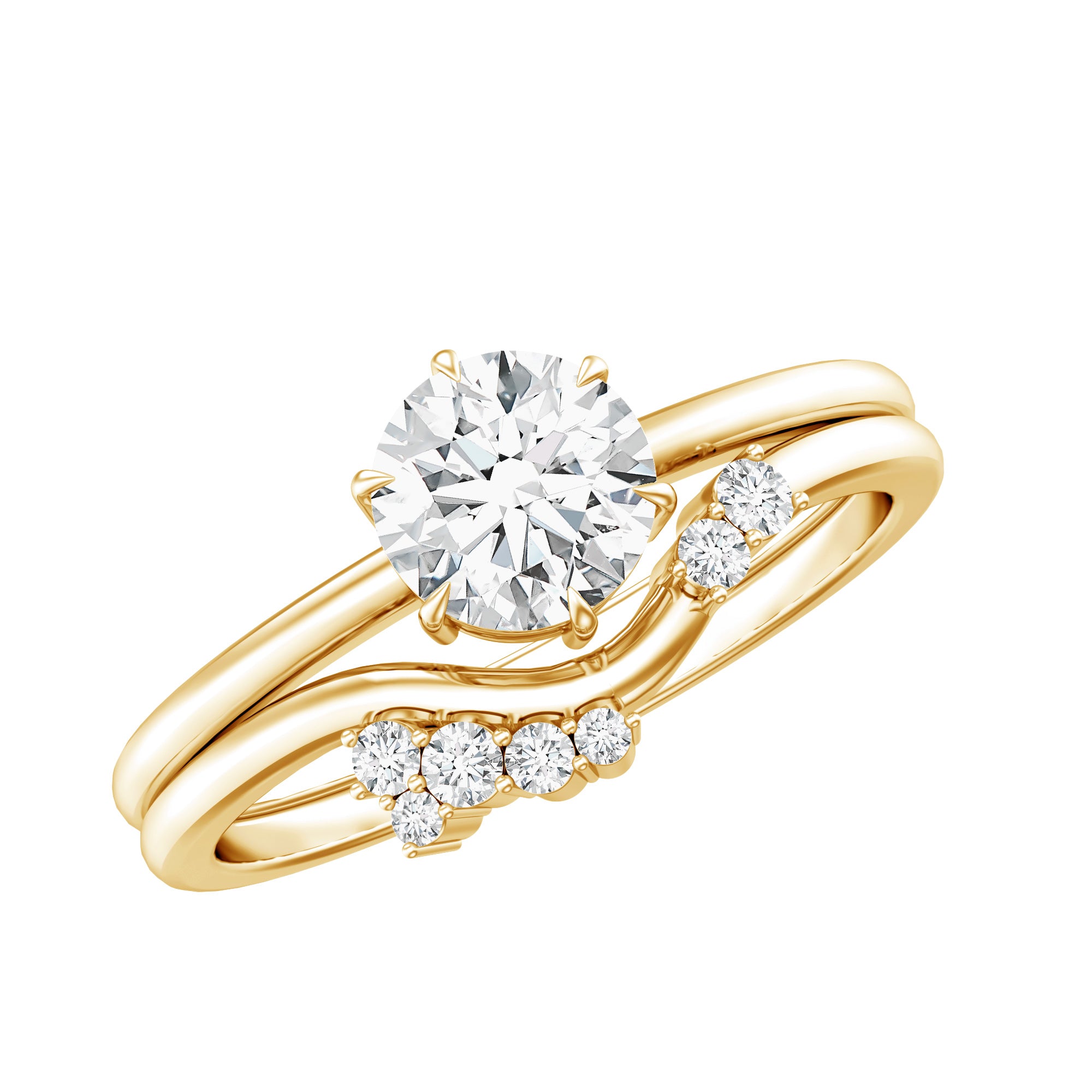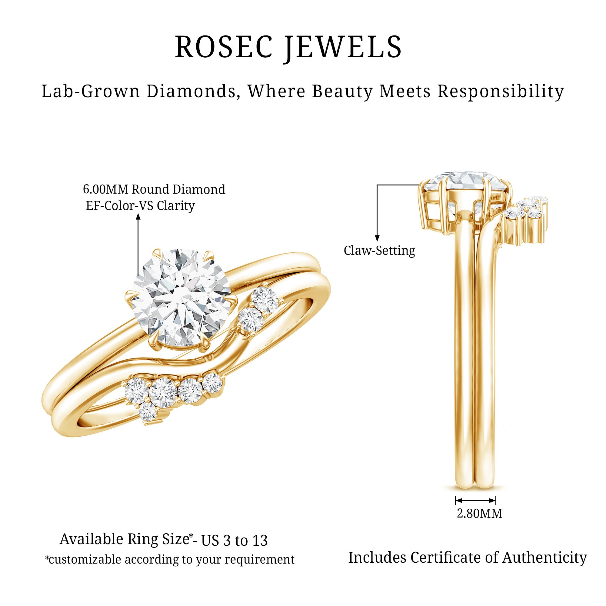 This breathtaking Lab Grown Diamond Ring Set captivates with its understated elegance exuding a sense of luxury. With the perfect combination of sophistication and allure, this Bridal Set Rings maximizes brilliance and sparkle, creating a harmonious look that captures the essence of commitment. Featuring 6 MM Round Shaped Lab Grown Diamond in Claw Setting as Solitaire with an enhancer decorated with lab Diamond gemstones, an epitome of modern elegance. This Engagement Ring with Wedding Band symbolizes your unique bond. Whether you are taking a step into forever or celebrating a cherished moment, this exquisite Wedding Ring Sets For Women is a reminder of your remarkable journey together.