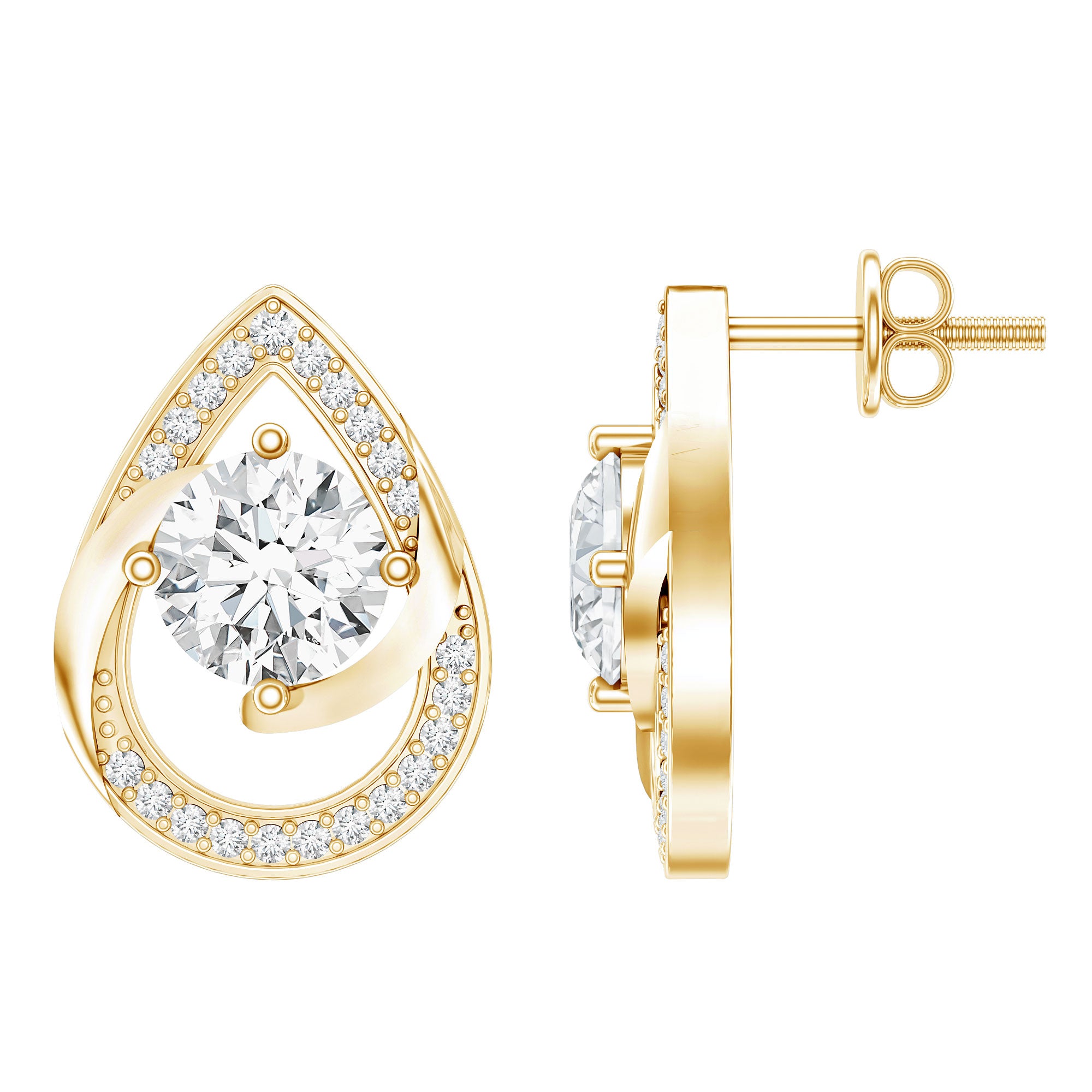 Experience timeless beauty with these exquisite Teardrop Earrings. Meticulously handcrafted, they feature a stunning 6 MM Round Shape Diamond set in a secure prong setting as the centerpiece. The elegant Teardrop design, enhanced by sparkling round cut diamond gemstones, adds a layer of sophistication, while the Screw Back Closure guarantees a snug fit. Perfect for any occasion, these Lab Grown Diamond Earrings are sure to draw attention. Gifting these Diamond Stud Earrings to the special woman in your life is a wonderful way to show your affection. With their beautiful and classy design, these Pear Shaped Earrings make a bold statement about your style, and if you were born in April, these studs are an ideal match for your personality.