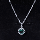 Certified 6 MM Round Lab Emerald Designer Halo Necklace with Moissanite