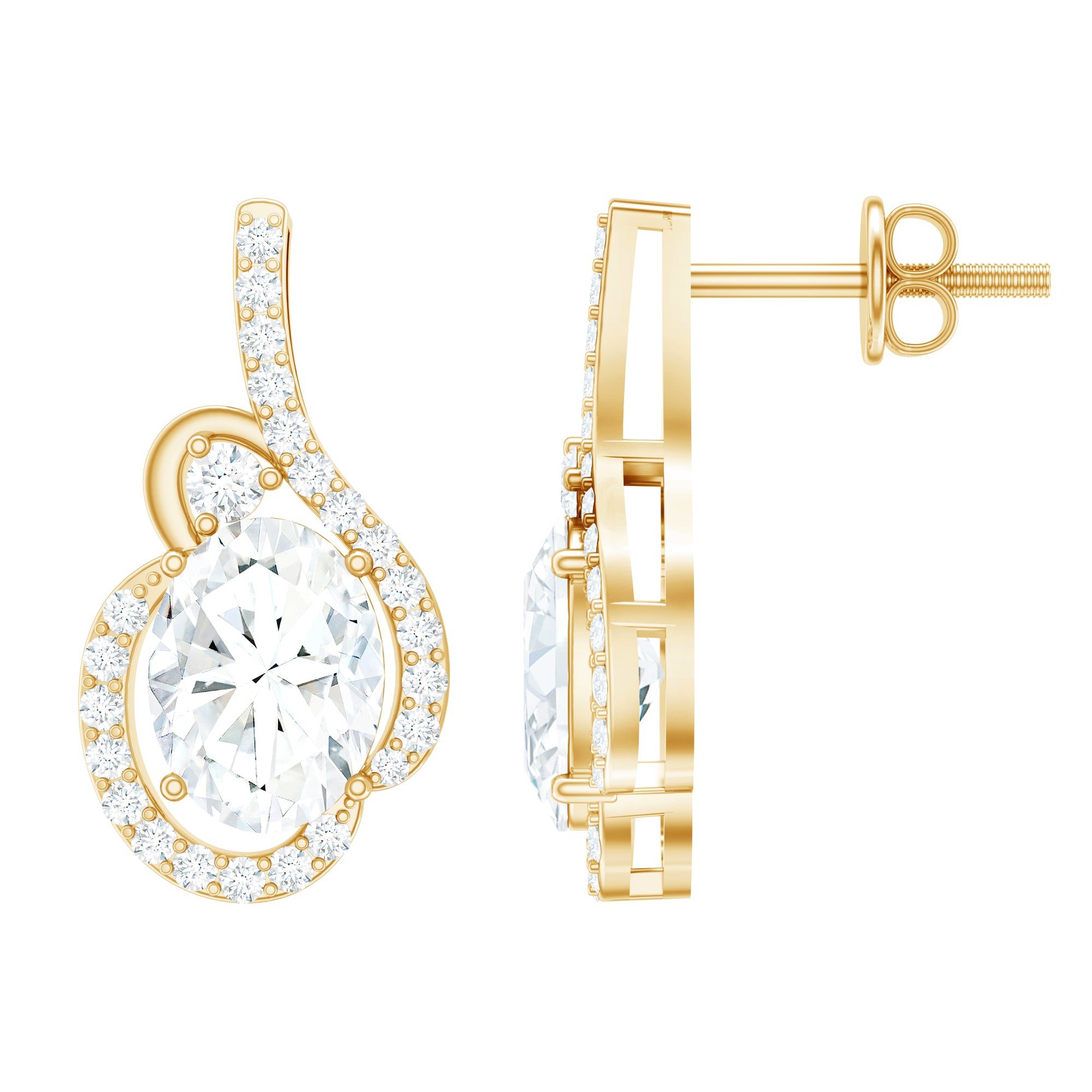 Nothing says perfection and beauty like these dreamy and alluring Diamond Earrings. Each Stud Earring is thoughtfully designed, featuring a stunning 6X8 MM oval-shaped diamond securely set in prongs and surrounded by a unique arrangement of round gemstones, radiating timeless elegance. Perfectly versatile, these Diamond Earrings (Unnatural) can effortlessly enhance any outfit. Whether youre looking for a wedding gift for a bride, an anniversary surprise for her, a birthday present for mom, or a meaningful gift for any woman, these Screw Back Earrings are a beautiful way to show your love and appreciation, making every occasion special. Crafted with exceptional skill, these Oval Stud Earrings are presented by Rosec Jewels, dedicated to quality and excellence.