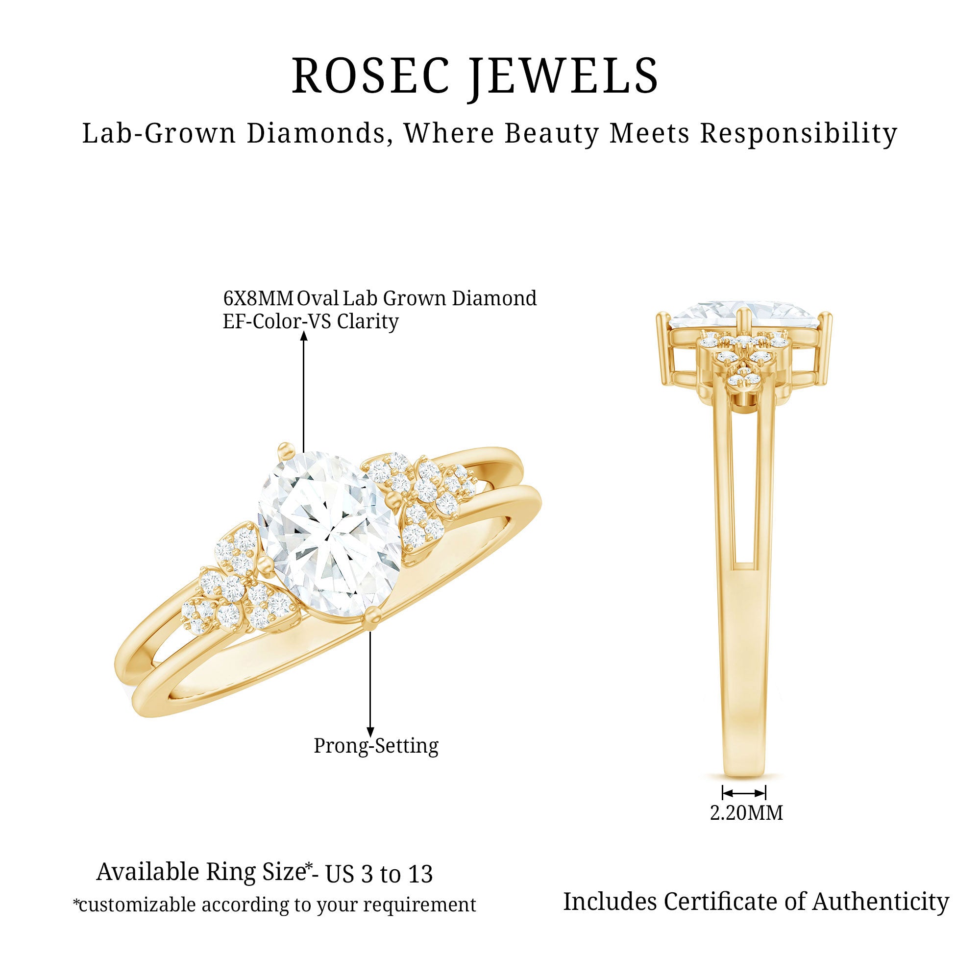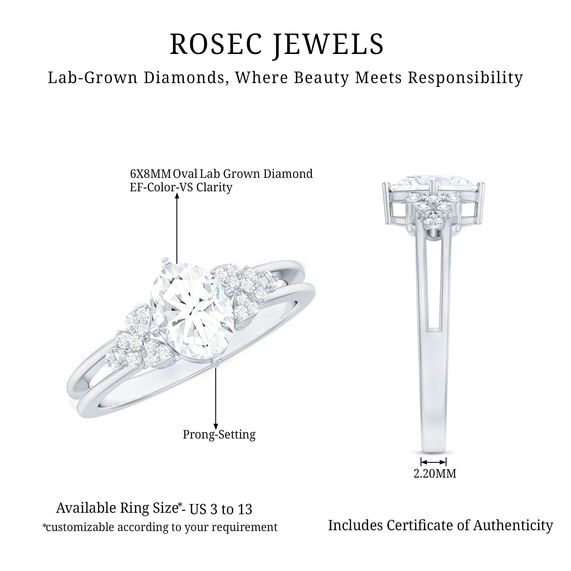 Certified 6X8MM Oval Lab Grown Diamond Designer Engagement Ring