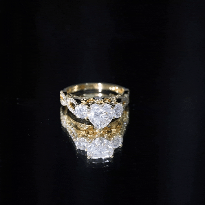 Crafted to steal hearts at first glance, this stunning Lab Created Diamond Ring is the perfect symbol of a love story. At its center shines a mesmerizing 7 MM heart shaped lab grown diamond, flanked by two round brilliant cut side stones that add balance, sparkle, and undeniable charm. Each diamond is lab grown, making this beauty not just dazzling but also ethically created for the modern couple. The band of this Heart Shaped Diamond Engagement Ring itself is an artistic masterpiece - a criss cross shank gracefully wraps around the finger, adorned with tiny diamonds that glisten with every movement. The elegance continues to the gallery, where the craftsmanship truly takes your breath away. Beneath the center stone lies an intricate vintage inspired design, complete with bezel set diamond and designer patterns, all encrusted with accent stones. A timeless piece designed to wow from every angle, this Three Stone Engagement Ring is not just a piece of jewelry; it is a promise, a memory, and a symbol of your past, present, and future together.