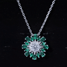 This beautiful Diamond Floral Necklace boasts a mesmerizing design that highlights the natural allure of the emerald stone, guaranteed to draw everyones attention. It features a 7 MM Round Shape diamond set in prongs, along with a unique combination of pear and marquise shape emeralds and delicate diamonds that enhance the charm of this Cocktail Necklace. Its truly the ideal accessory for your upcoming party. This Diamond and Emerald Necklace is available in a variety of metal color options so you can choose whatever suits your unique style and make it a truly personalized piece. As an April birthstone diamonds are known to enhance strength, clarity, and everlasting love. This pendant makes for an ideal gift for those born in April, symbolizing their inner radiance and refined grace.
