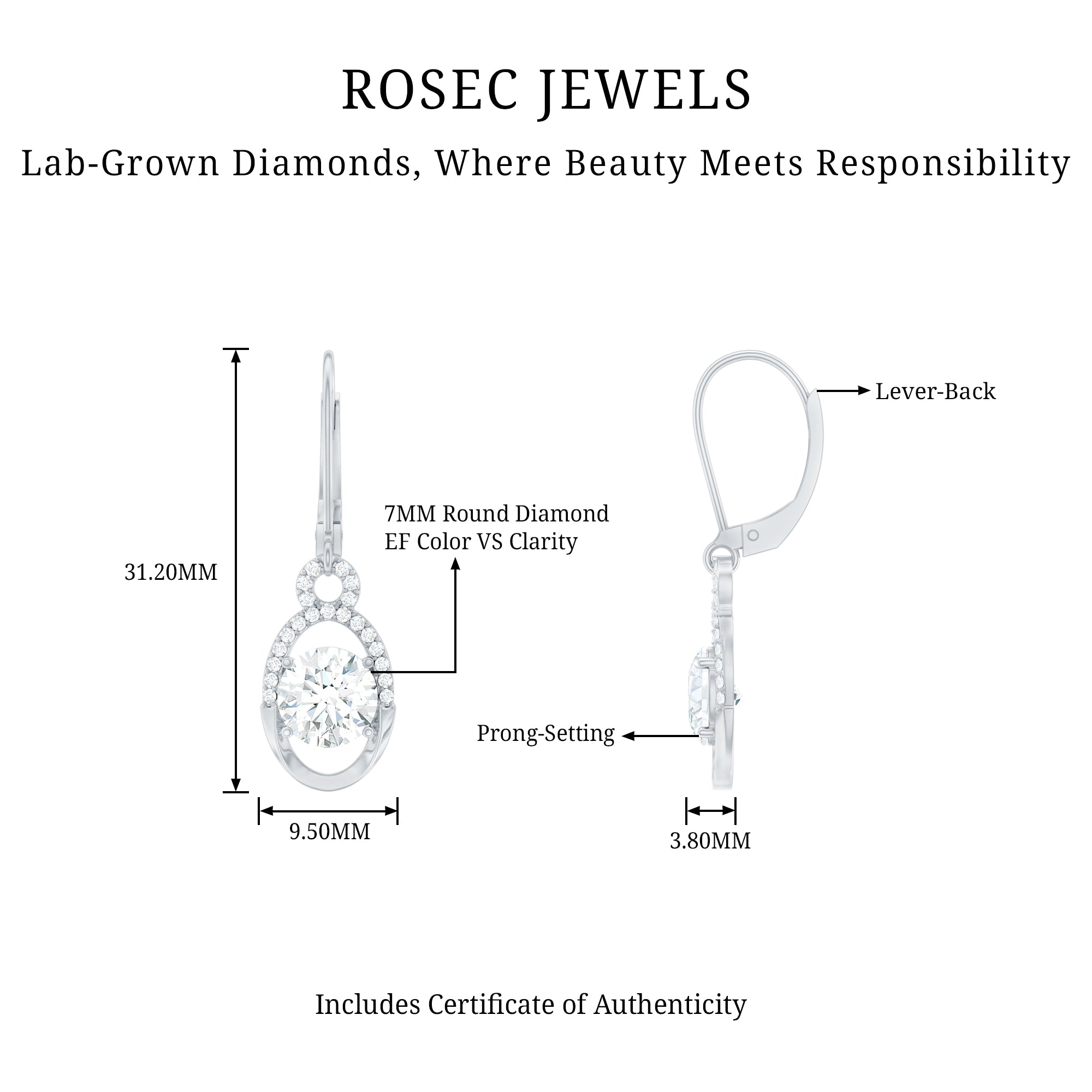 Searching for the perfect gift that will make her shine - our Diamond Drop Earrings got you covered. These Oval Drop Earrings features a stunning 7 MM round shaped lab grown diamond of EF-VS Quality, set in a prong setting in the center of an open oval shape that is decorated with dainty stones. With a lever-back closure, these Cocktail Earrings are easy to wear and stay securely in place throughout the day and evening. Dress up your ears with these stunning Round Diamond Earrings that elevate the outfit in mere seconds. These pocket friendly April Birthstone Earrings also make the perfect birthday present for your loved ones. They come with a certificate of authenticity and a signature jewelry box.