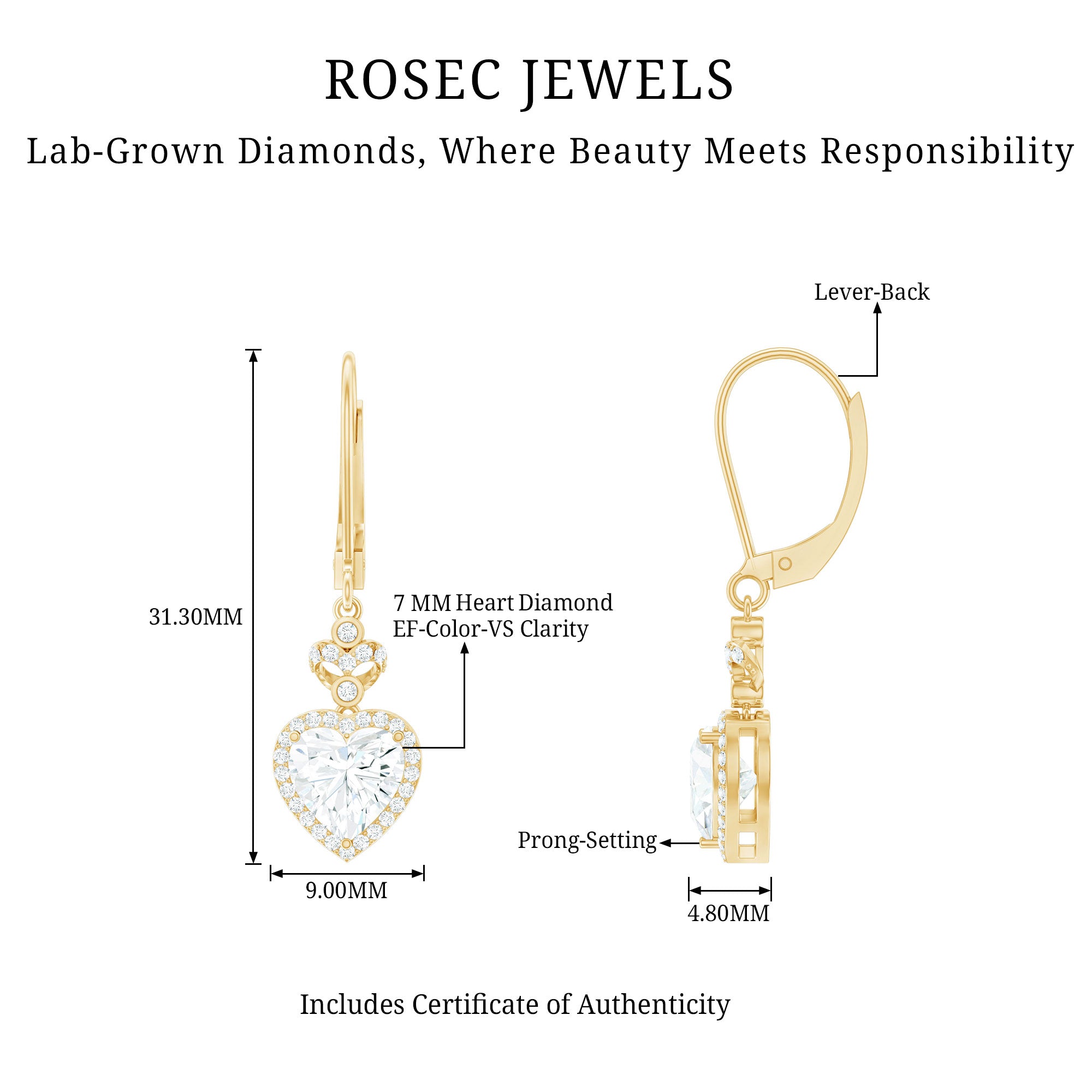 Certified 7MM Lab Grown Diamond Heart Drop Earrings