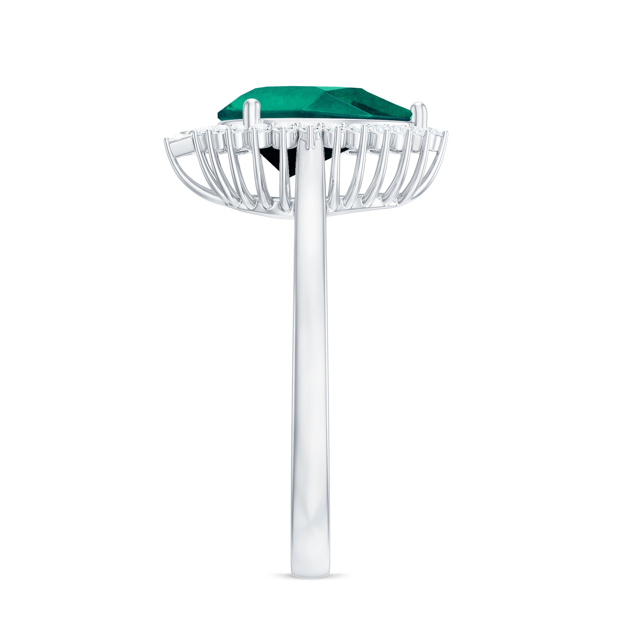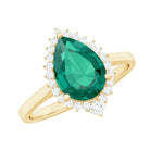 Certified 7X10 mm Lab Grown Emerald Teardrop Engagement Ring with Diamond Halo