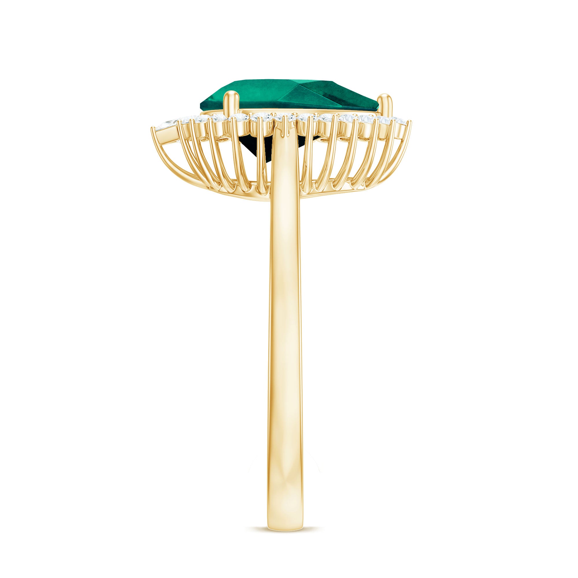Handcrafted with perfection and attention to detail, this Teardrop Engagement Ring is a moment frozen in time. At the center is a 7X10 mm Pear Shape Lab Created Emerald in Prong Setting, glowing with deep green brilliance and shaped like a delicate teardrop, that symbolizes love, emotion and a future filled with promise. Surrounding the AAAA Quality Lab Emerald is a shimmering Halo of Diamond stones, each one adding a touch of sparkle and grace. But right at the rounded base of the Lab Emerald, a single Princess Cut Diamond is diagonally placed into the halo, that adds a surprising twist of elegance and a bold design. The mix of soft curves and sharp lines creates a beautiful balance, classic yet different. This Lab Emerald Diamond Engagement Ring is a ring made for someone who appreciates beauty with a twist. Whether it is a proposal, an anniversary or a gift for special someone, this Lab Emerald Cocktail Ring is designed to mark the most meaningful moments of life. Arrives in a timeless jewelry box and available in various ring sizes, this Lab Grown Emerald Ring is ready to open hearts.
