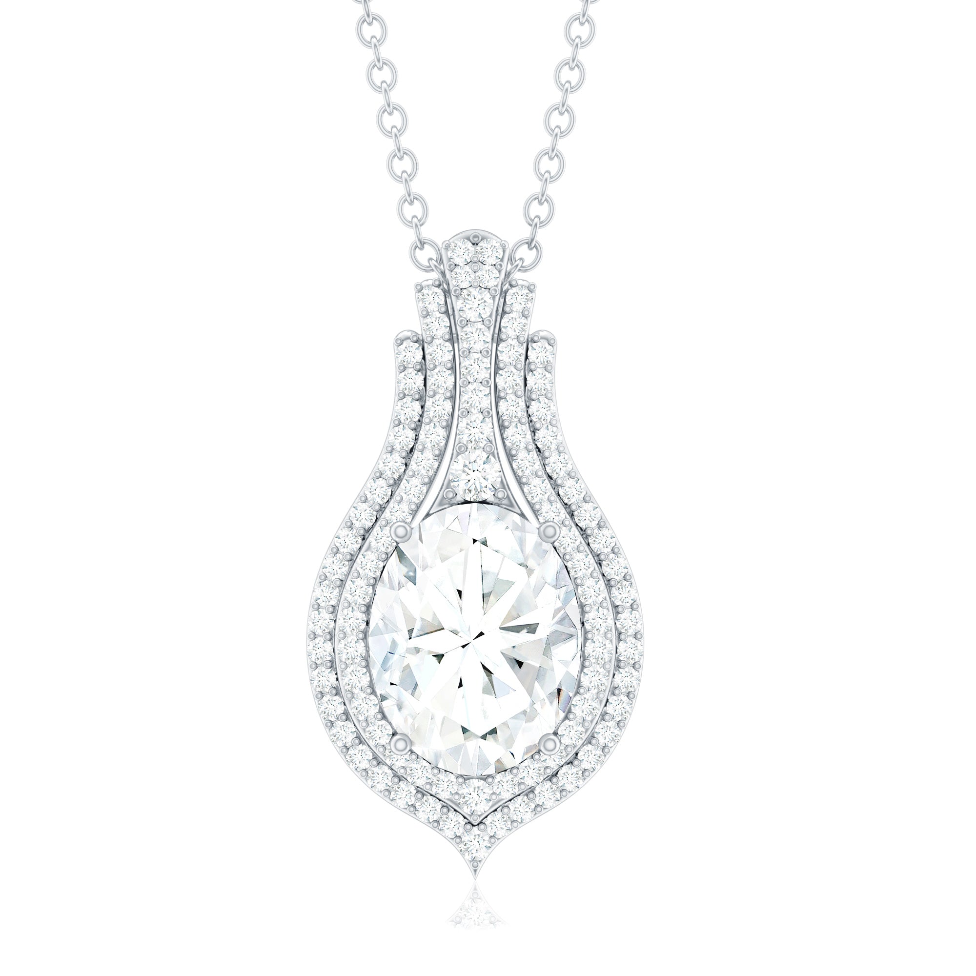 Certified 7X9 MM Oval Moissanite Statement Wedding Necklace with Chain