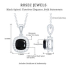 Want to make a bold fashion statement? Here weve got your back with this Black Spinel Pendant Necklace. It features an 8 MM Cushion Shape Black Spinel encircled by smaller Moissanite stones securely placed in Prong Setting. This Halo Pendant dangles in a sturdy cable chain, which makes it perfectly sit on the neckline. This Classic Pendant Necklace can be presented to someone to whom you want to express your intense feelings. This pendant will be shipped to you in a premium quality velvet pouch with the certificate of authenticity.
