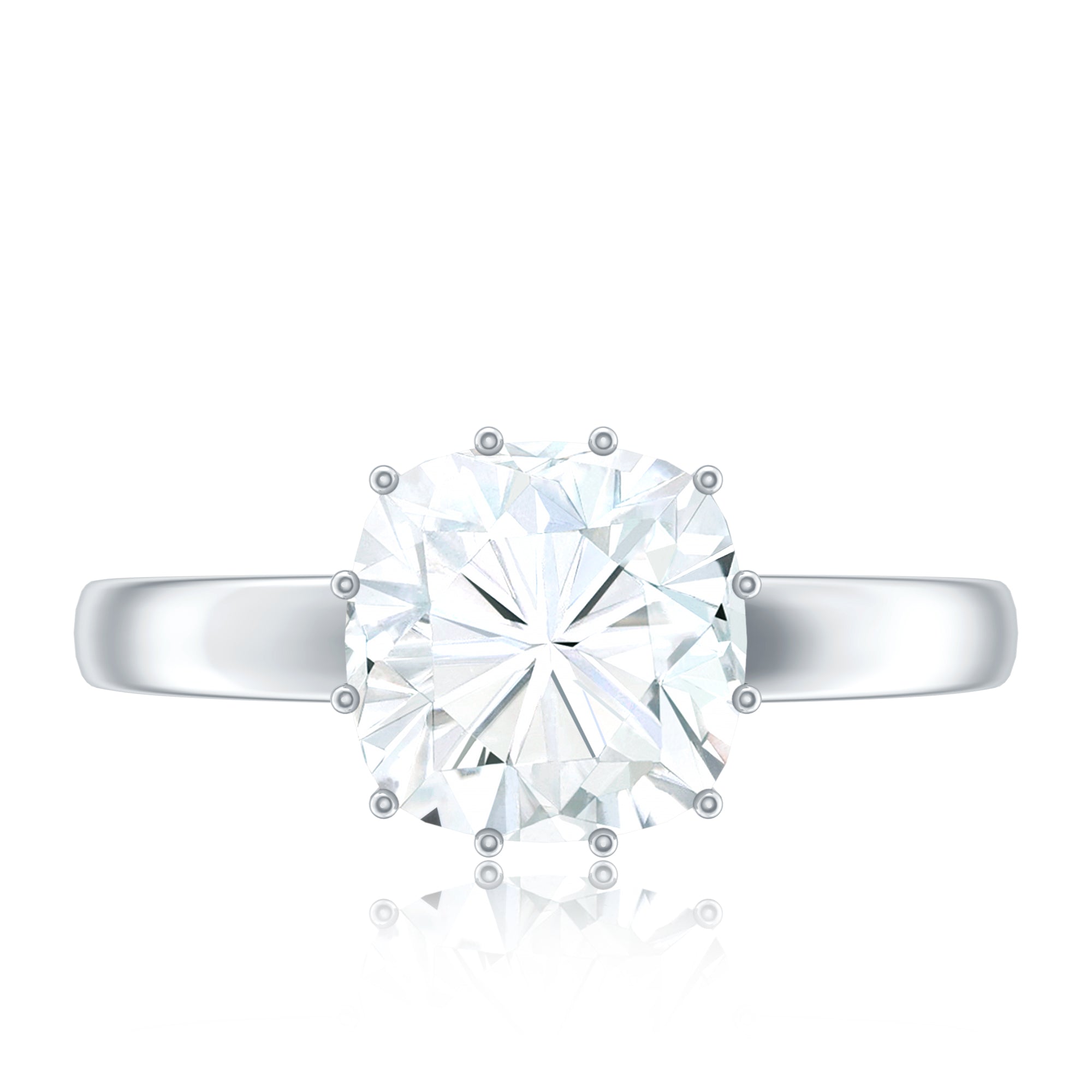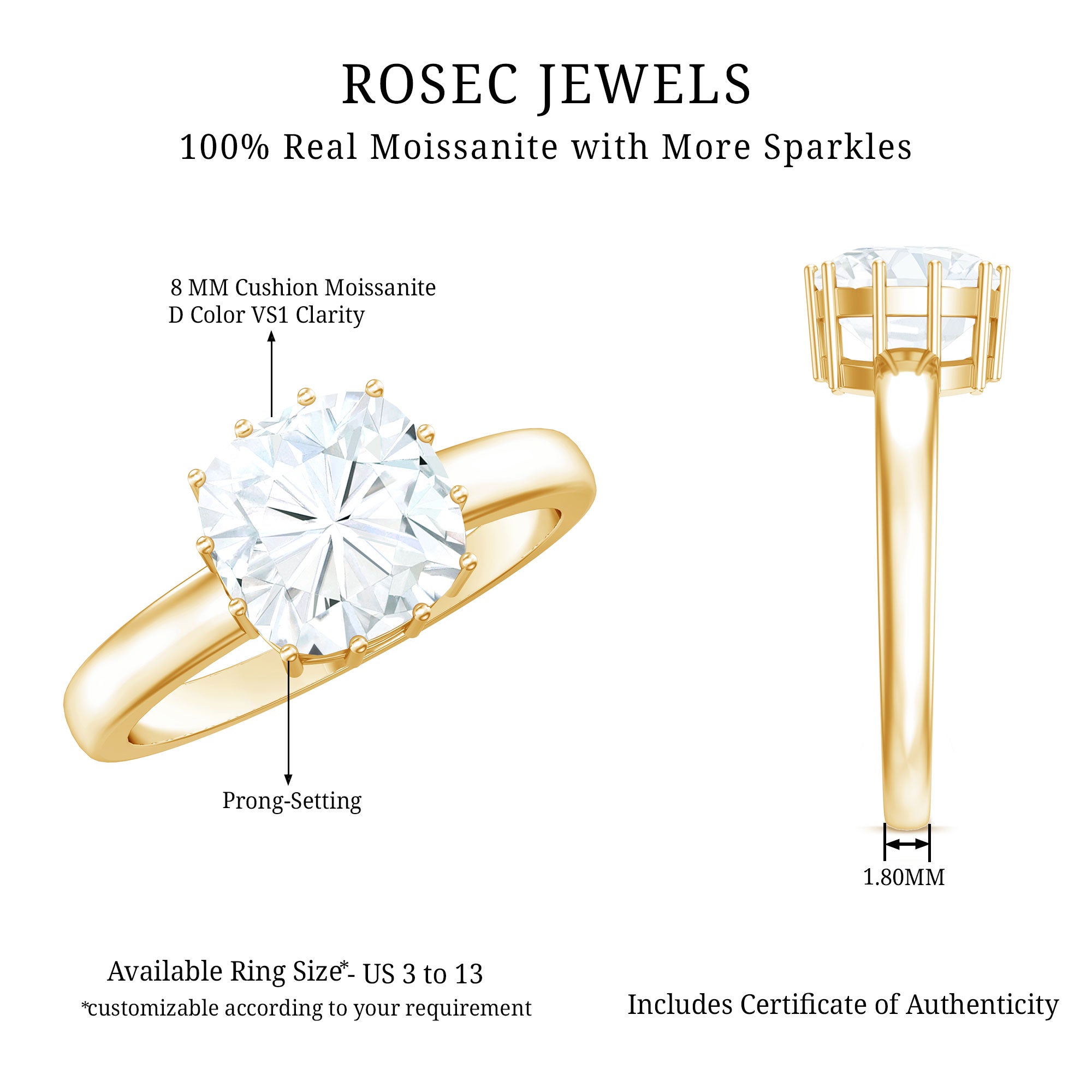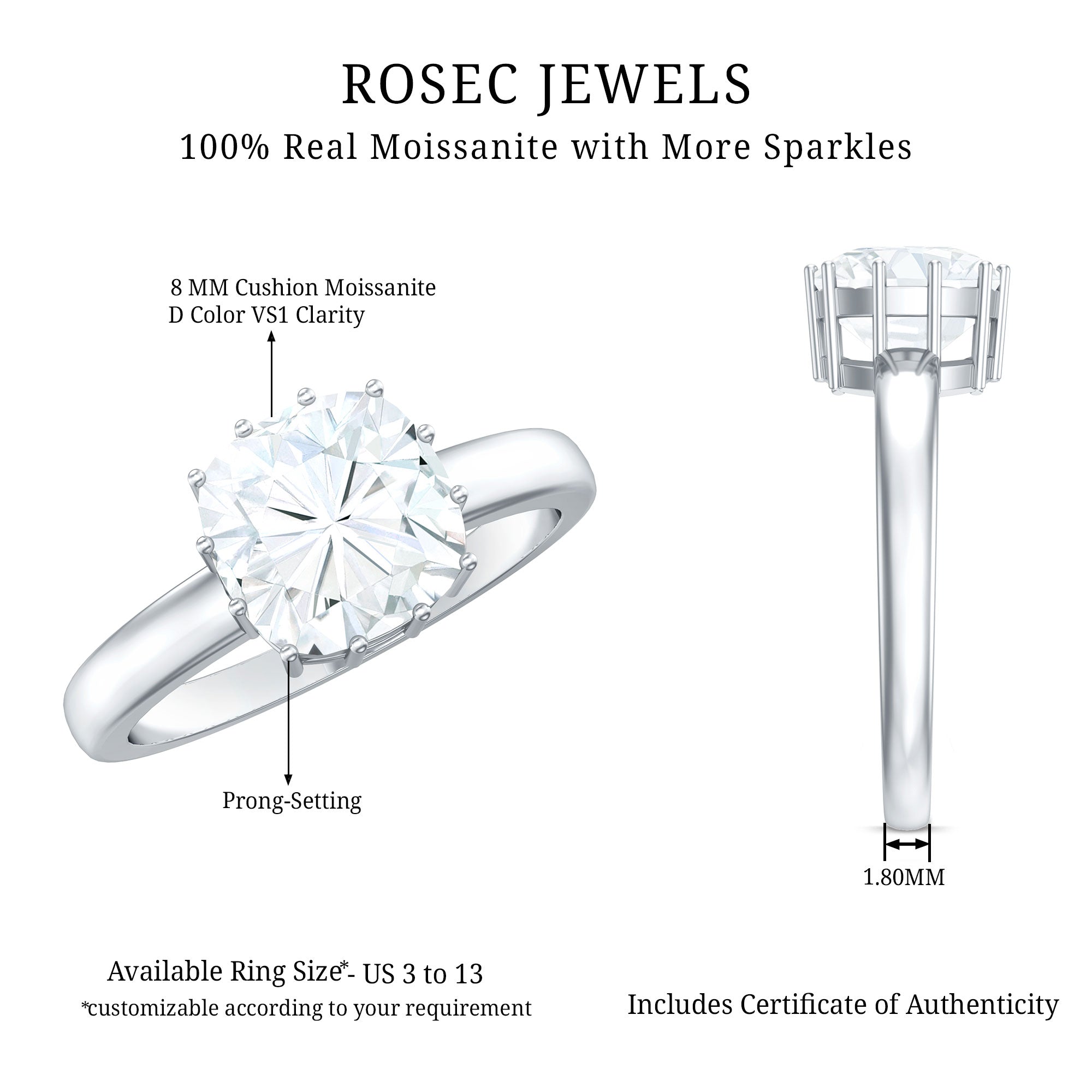 Certified 8 MM Cushion Cut Moissanite Solitaire Engagement Ring