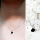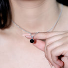 Make a special place in her heart when you present this Black Diamond Pendant to her. This Solitaire Pendant Necklace is crafted with an 8 MM round shaped lab grown black diamond of AAAA quality set securely in prong setting and dangling from a cable chain. The Black Stone Pendant is handcrafted in 14K White Gold Plated Silver and further adorned with a unique bail at the top, making it more eye-catching. Not only does this pendant necklace exude luxury, but it also reflects a conscious choice, handcrafted with lab grown black diamond, it is eco-friendly and affordable. If you are looking for something classic and timeless piece of jewelry, this is the perfect pendant to celebrate your love.