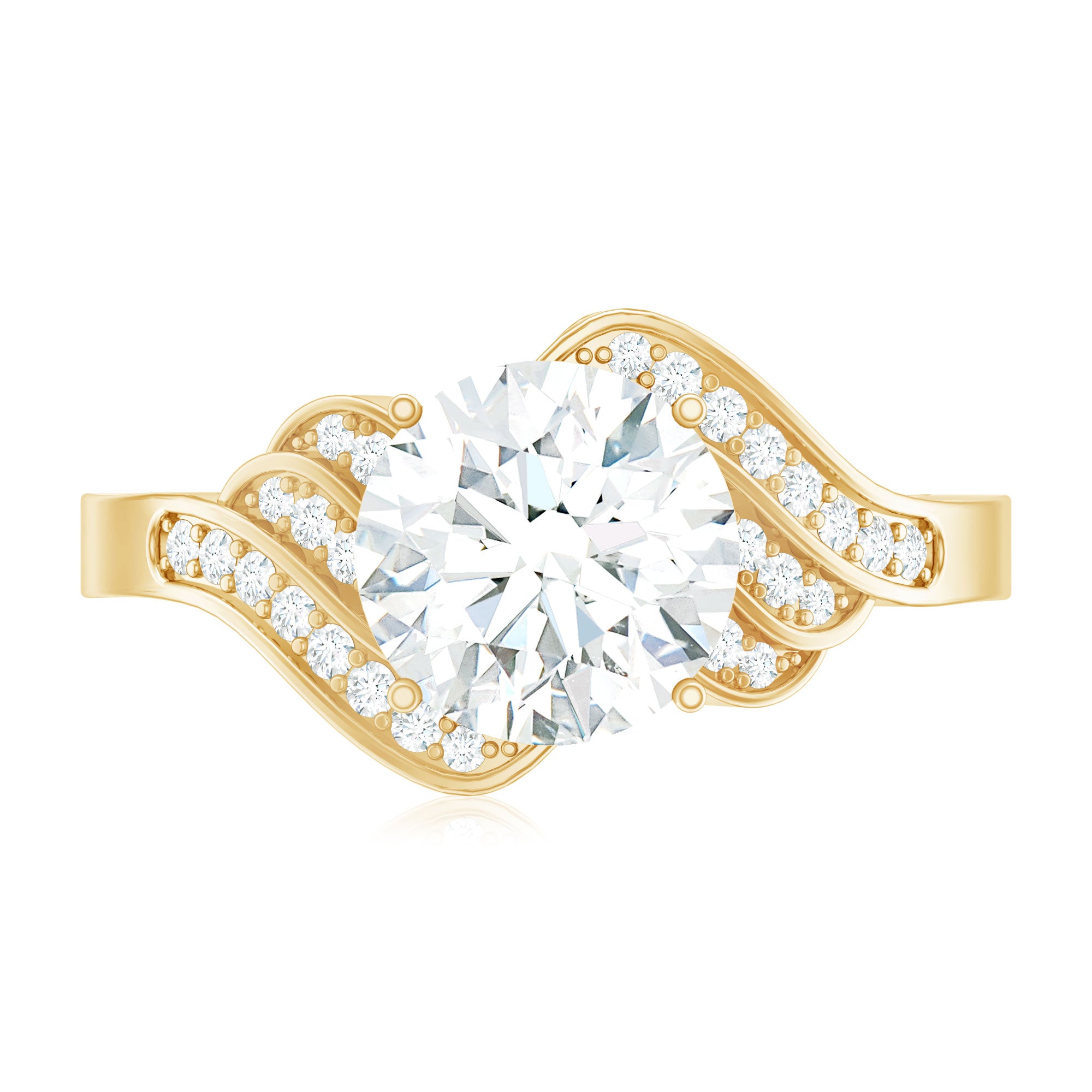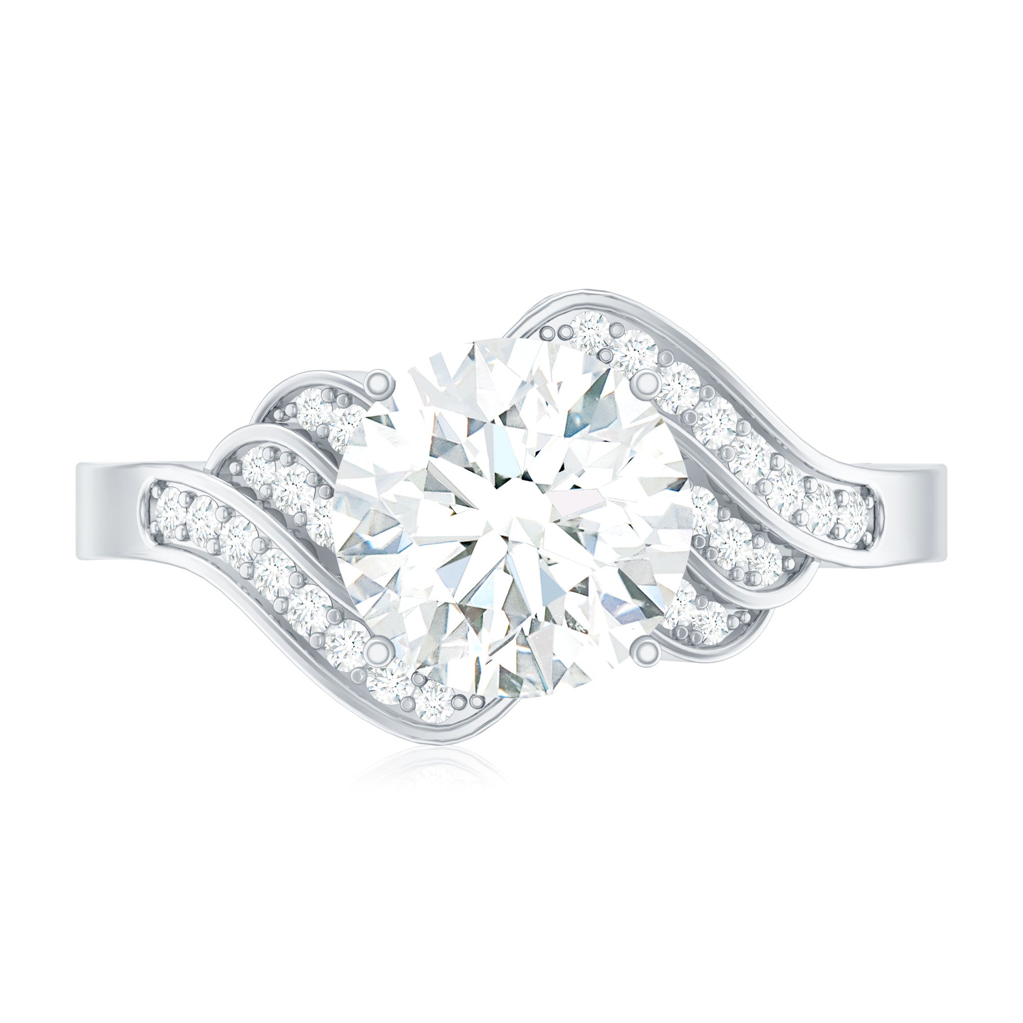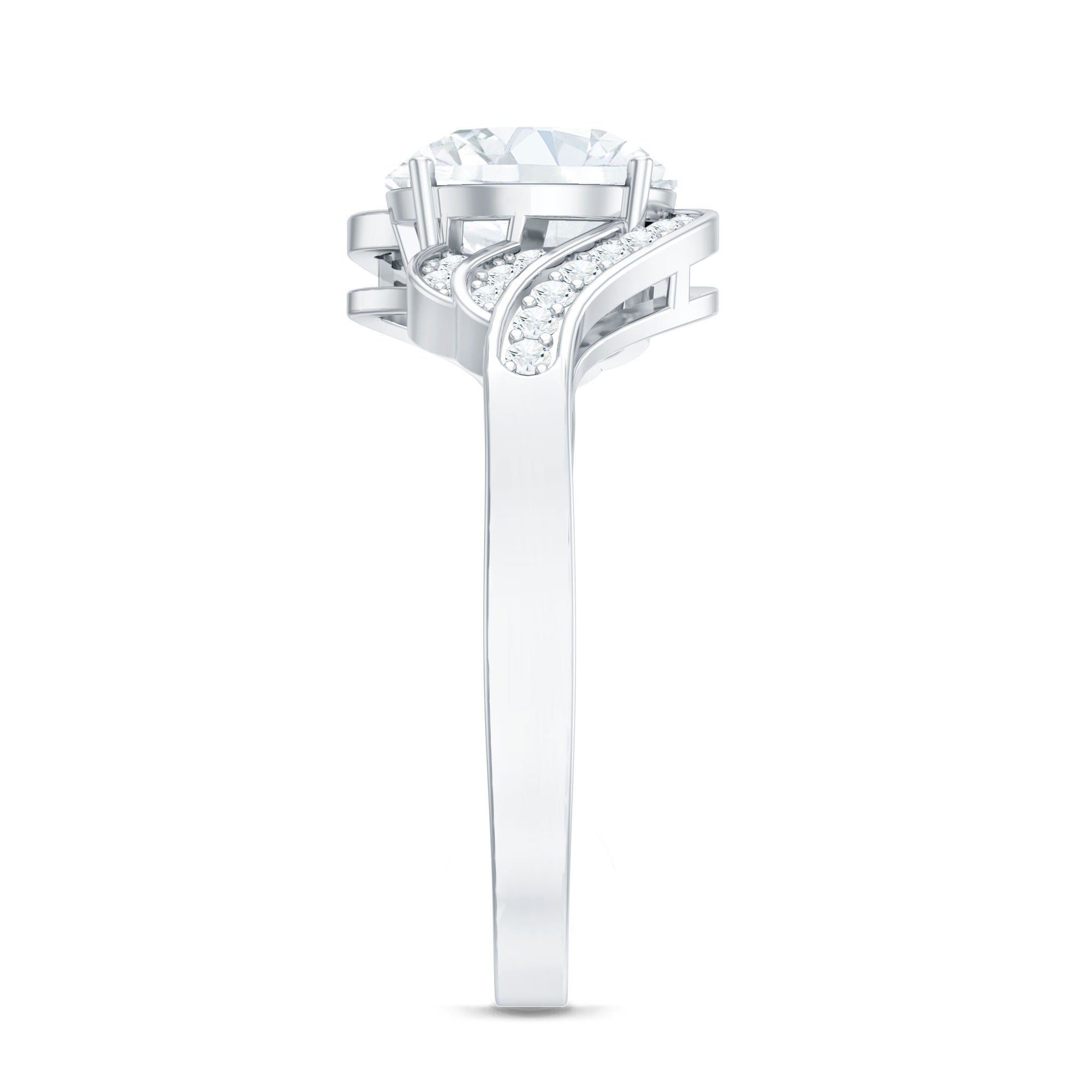 Seal the deal with a Designer Diamond Ring that screams passion, sparkle, and happily ever after. This Solitaire Engagement Ring is designed with lab grown gemstone, an 8 mm round shape diamond is set in the center with multiple curved rows of round diamonds on either side. The prong set focal stone and plain band give this 2 Carat Diamond Engagement Ring a timeless feel while the smaller stones on it add a designer touch. Whether you are proposing, celebrating a milestone, or simply making a grand gesture, this Round Shaped Ring is one shell never forget. No matter what youre attending, a glamorous evening dinner, or a festive celebration, it will ensure you shine with confidence and style.