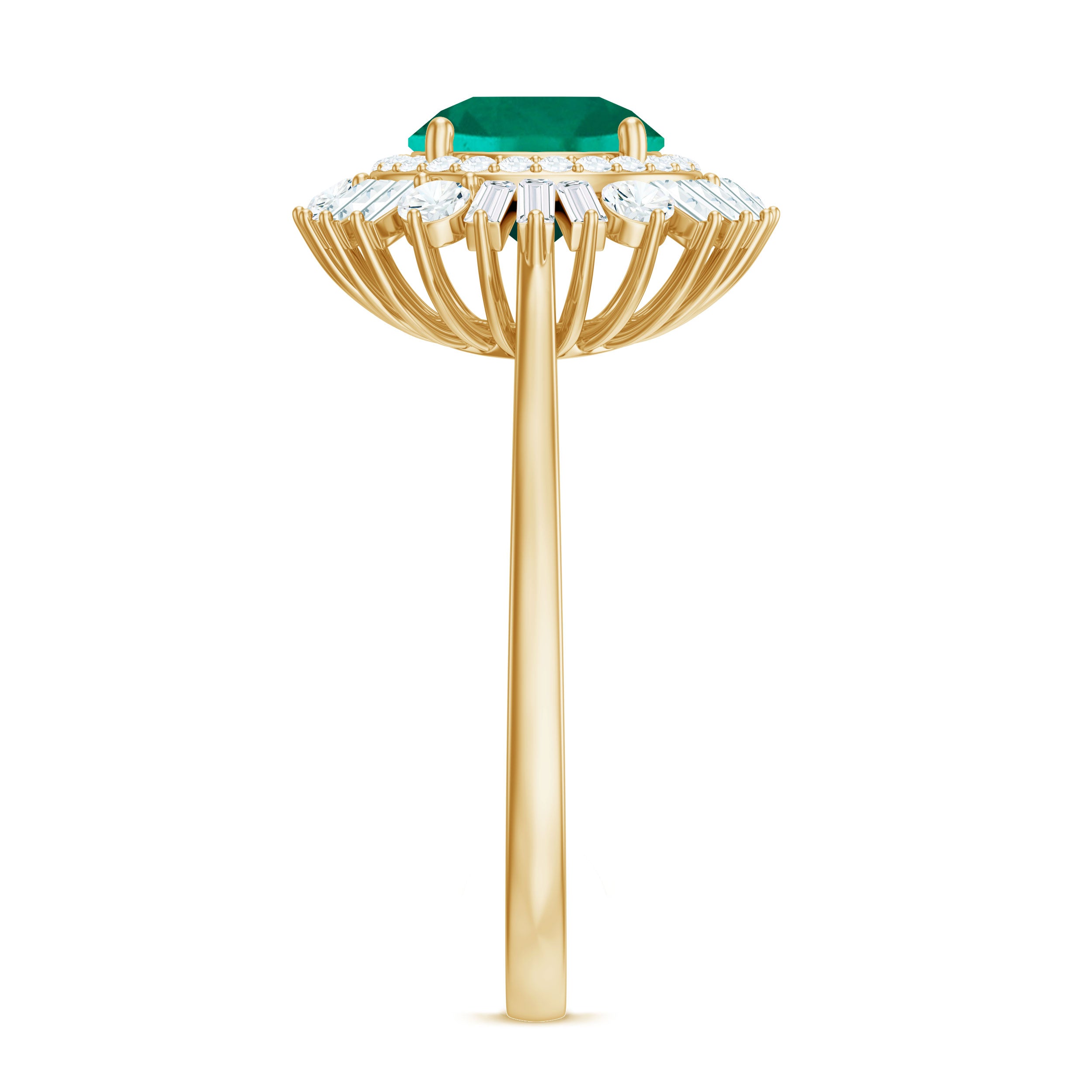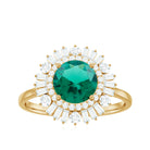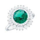 Designed for special occasions, this Statement Ring is an eye-catching piece of jewelry with a distinctive design. Add drama to your outfit with this Lab Emerald Cocktail Ring and become the center of attraction. Handcrafted with perfection and attention to detail, this Fine Ring features a vivid green 8 mm Round Shape Lab Created Emerald set in Prong Setting as a centerpiece, embraced by a Double Halo for more sparkle. The inner halo is of Round Shape Moissanite stones and the outer halo features both Round and Baguette Shape Moissanite stones in an alternating pattern that creates a stunning statement. Drawing attention to your hand, this Lab Emerald Engagement Ring with Halo creates a perfect contrast of color and sparkle. Presented in a signature jewelry box, this Lab Grown Emerald Ring is ideal for special moments, from weddings to engagements. Available in various ring sizes, this Double Halo Engagement Ring catches the light from every angle. Let your ring speak for your style, with a timeless piece of jewelry that will never go out of fashion.