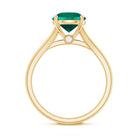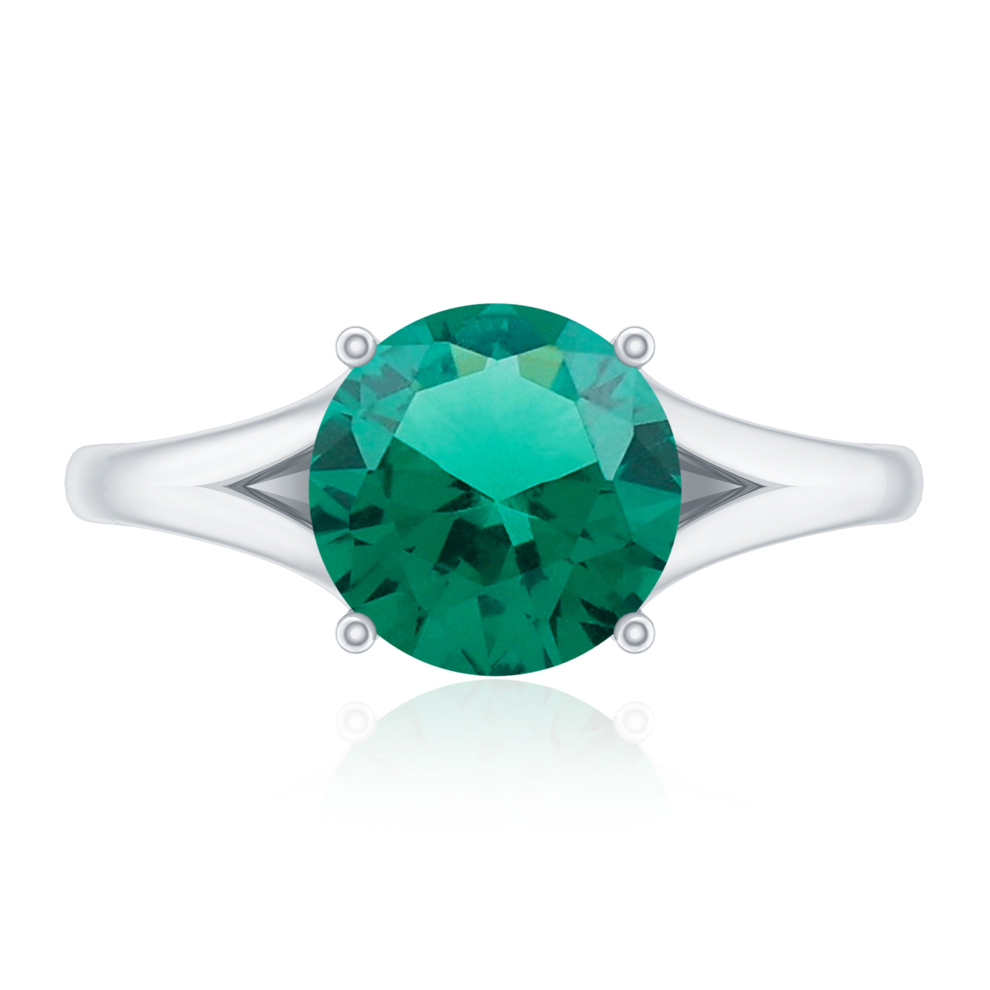 Celebrate your unique love story with this elegant Solitaire Engagement Ring, designed to reflect beauty, meaning and style. Simply stunning, this Fine Ring features a vibrant 8 mm Lab Created Emerald set in Prong Setting that shines brightly, showcasing a rich green color that symbolizes growth, harmony and renewal, perfect for the beginning of your lifelong journey together. This Lab Grown Emerald Ring features a graceful Split Shank design, which adds a modern and elegant touch and also symbolizes two individual lives coming together as one. The split shank represents the connection and balance in a relationship while providing extra support and focus to the center Lab Emerald. Adding to its charm, two Diamond stones are carefully set beneath the center stone, that symbolizes hidden treasures in your love. The Lab Grown Emerald offers both stunning color and clarity, while being an ethical and sustainable choice. Perfect for a proposal or a meaningful gift, this Split Shank Engagement Ring blends classic elegance with thoughtful symbolism and craftsmanship, making it a piece she will cherish forever as a symbol of your everlasting bond.