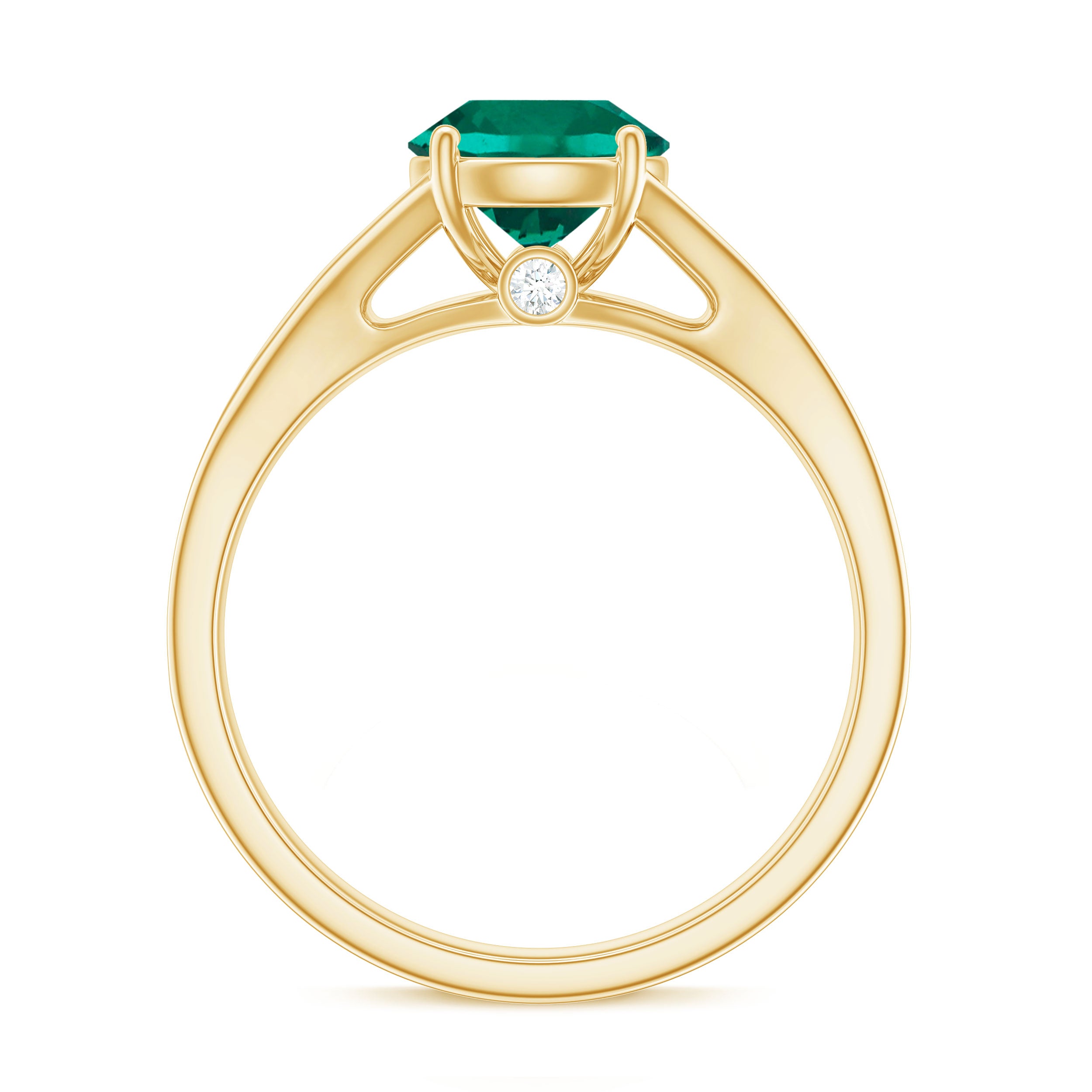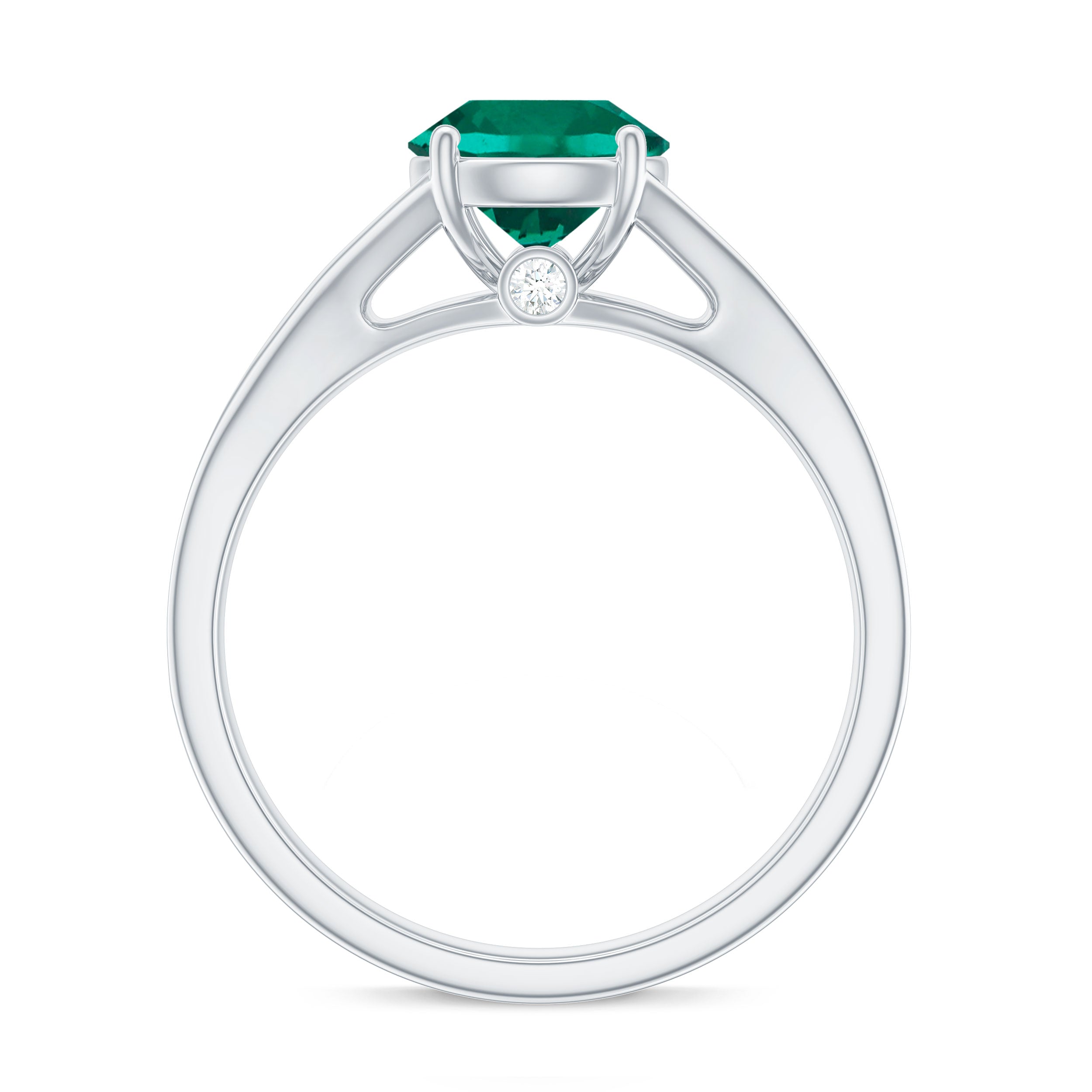 Certified 8 mm Lab Grown Emerald Split Shank Engagement Ring with Diamond