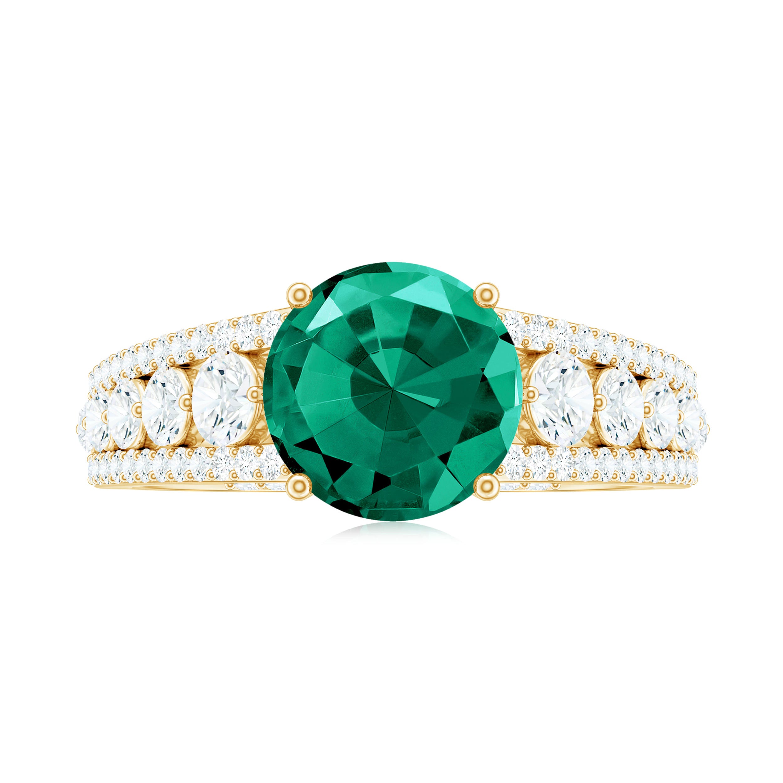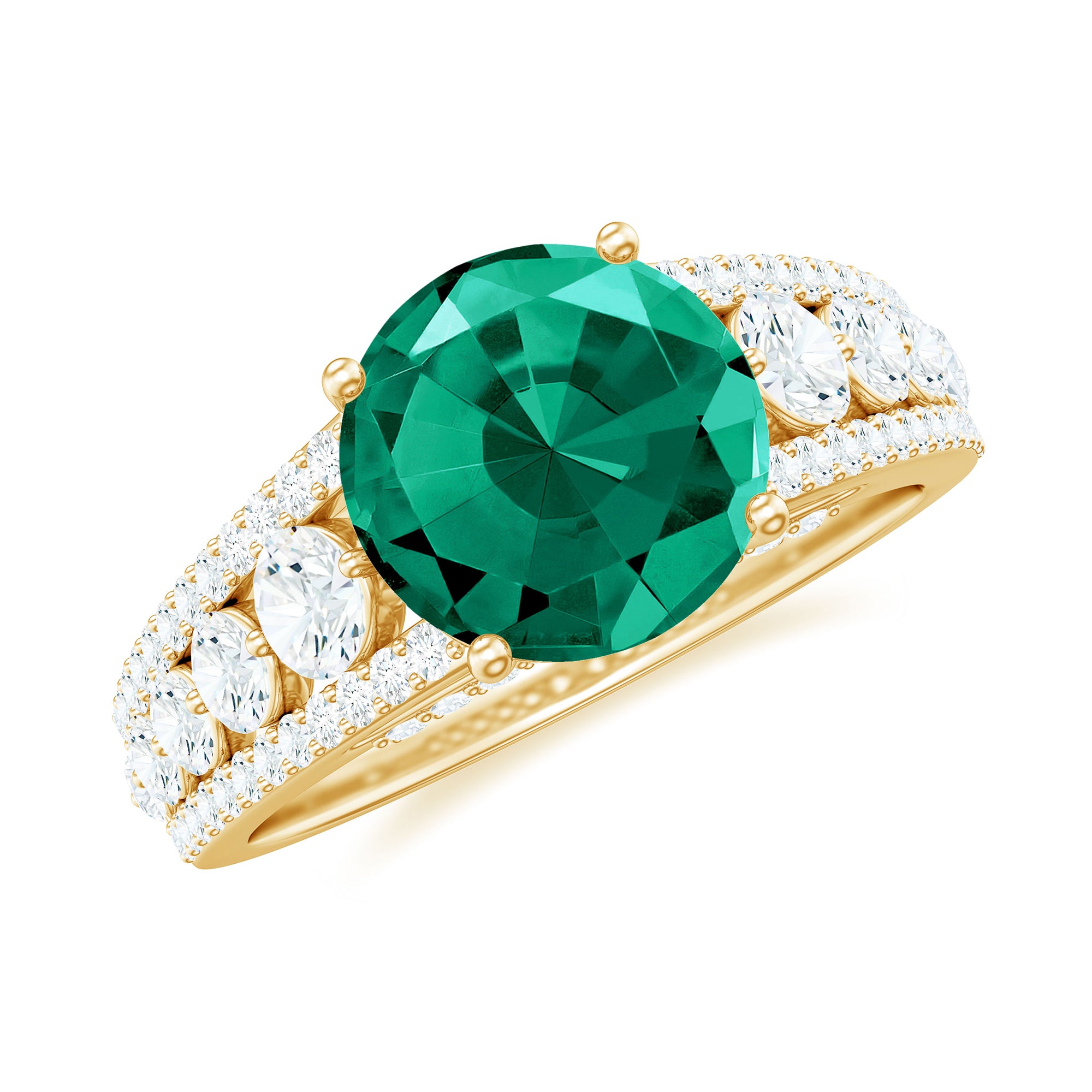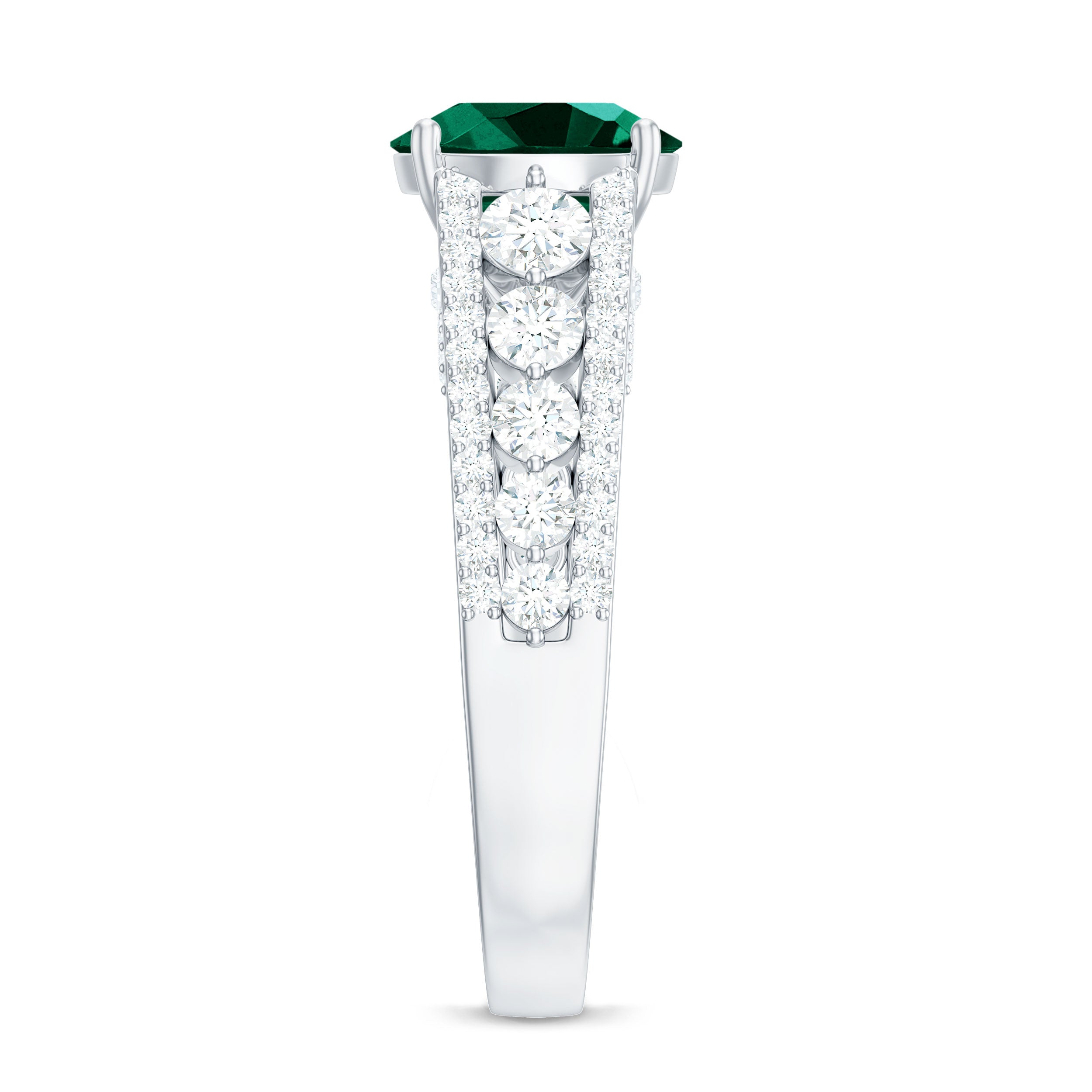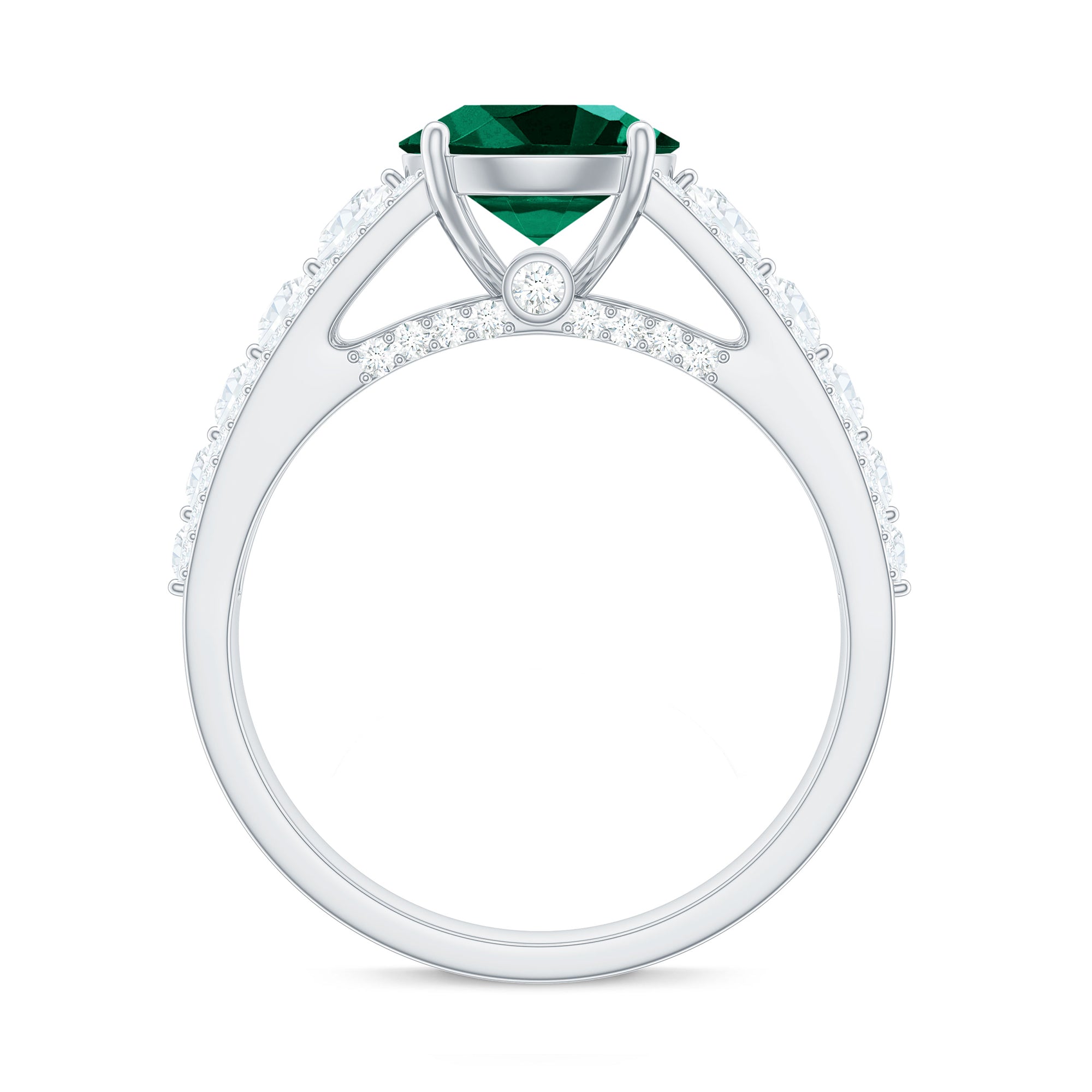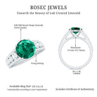 Certified 8 mm Lab Grown Emerald Statement Engagement Ring with Side Stones