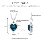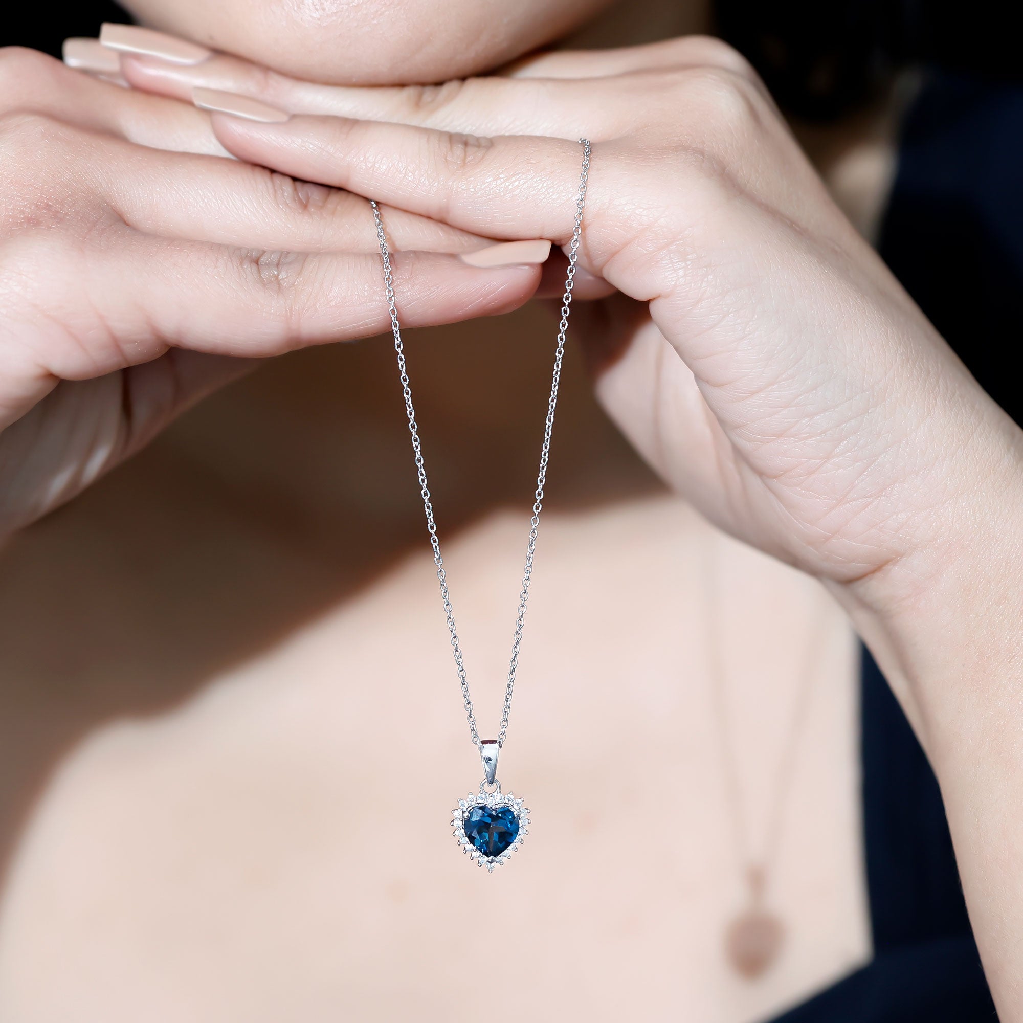 Certified 8 MM London Blue Topaz Heart Pendant with Moissanite Halo