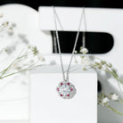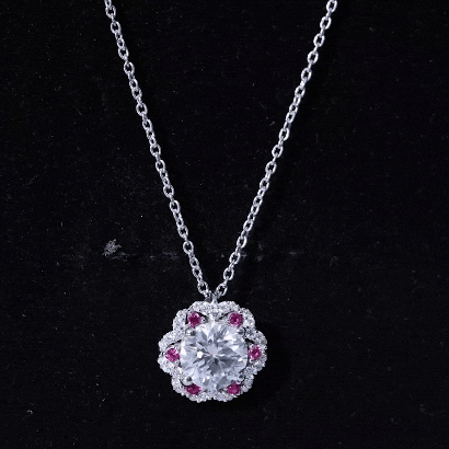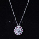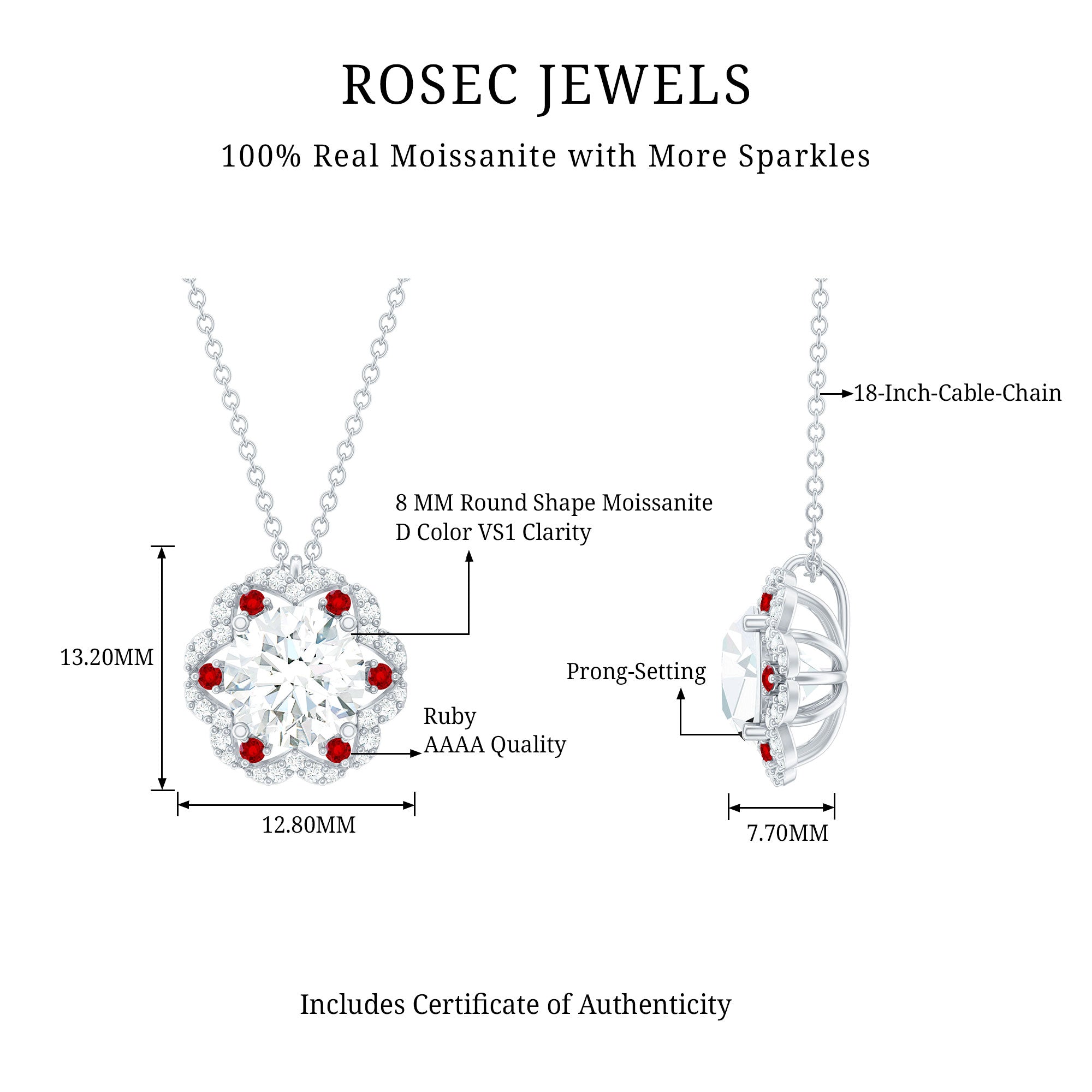 Certified 8 MM Moissanite Flower Statement Necklace with Lab Ruby