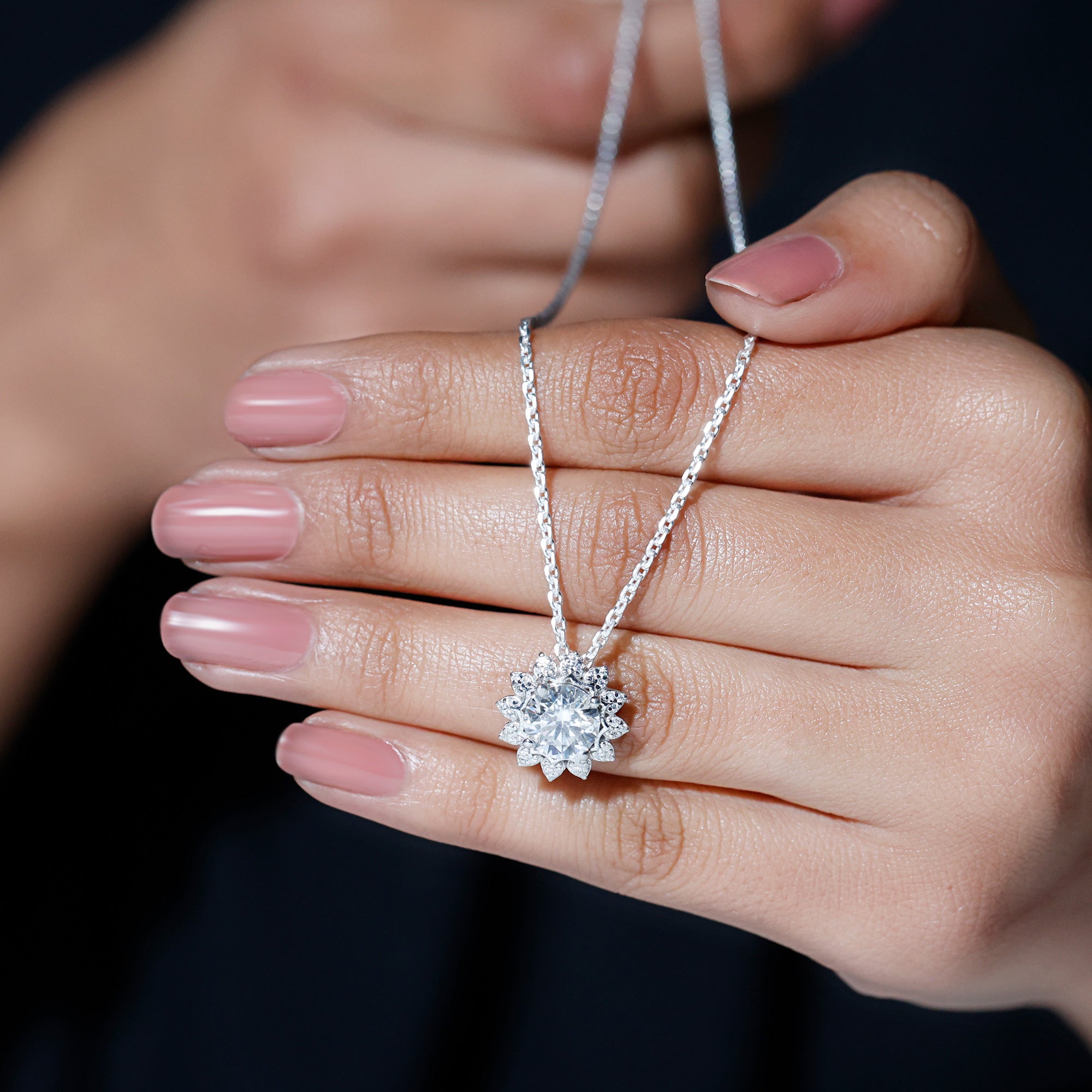 Certified 8 MM Moissanite Sunflower Pendant Necklace with Chain