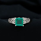 A symbol of love, commitment and a promise for the future, this Filigree Engagement Ring is the perfect choice for someone who wants to stand out with elegance and unique charm. At the heart of the design is a vibrant 8 mm Princess Cut Lab Created Emerald of AAAA Quality held in Claw Setting, known for its brilliant green hue and facets that reflect light beautifully. The intricate filigree detailing over the band adds a vintage inspired touch, giving this Princess Cut Engagement Ring a delicate and artistic appearance. What makes this Lab Grown Emerald Ring truly special is the Diamond stone, placed beneath the Lab Emerald, symbolizing the secret strength and depth of your love. This Princess Cut Emerald Ring (Lab Grown) is carefully crafted to combine both timeless and contemporary elements, making it an ideal choice for those who appreciate meaningful design. The classic Princess Cut paired with the elegant Filigree ensures that this Square Engagement Ring will remain stylish for generations to come. Whether you are proposing or celebrating an important milestone, this 2 Ct Emerald Ring is a symbol of devotion and a promise that lasts forever.