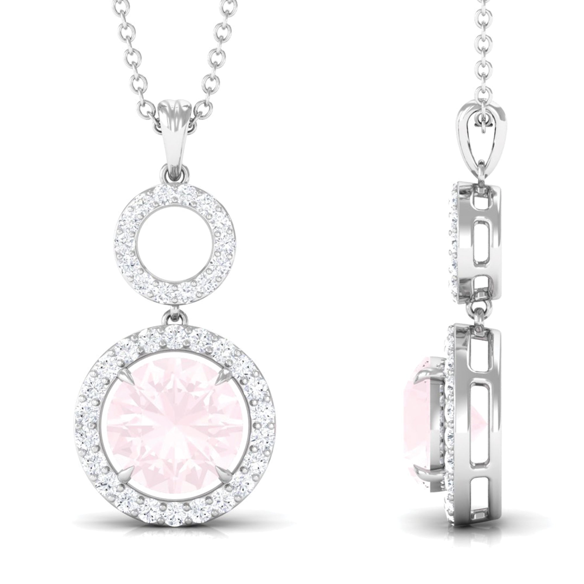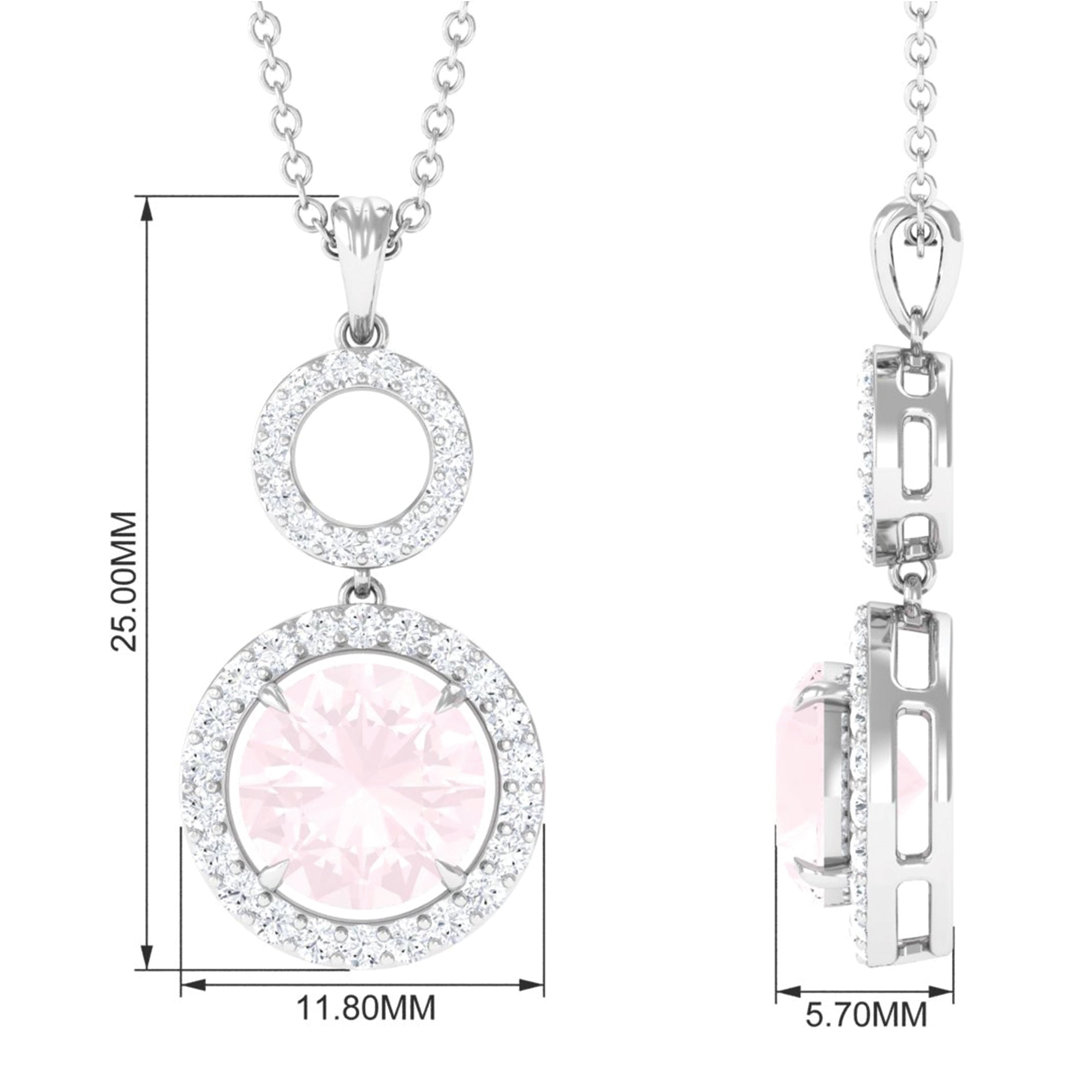 Certified 8 MM Rose Quartz Dangle Necklace With Diamond