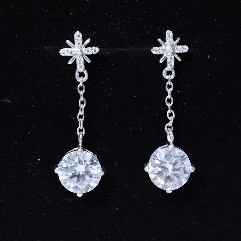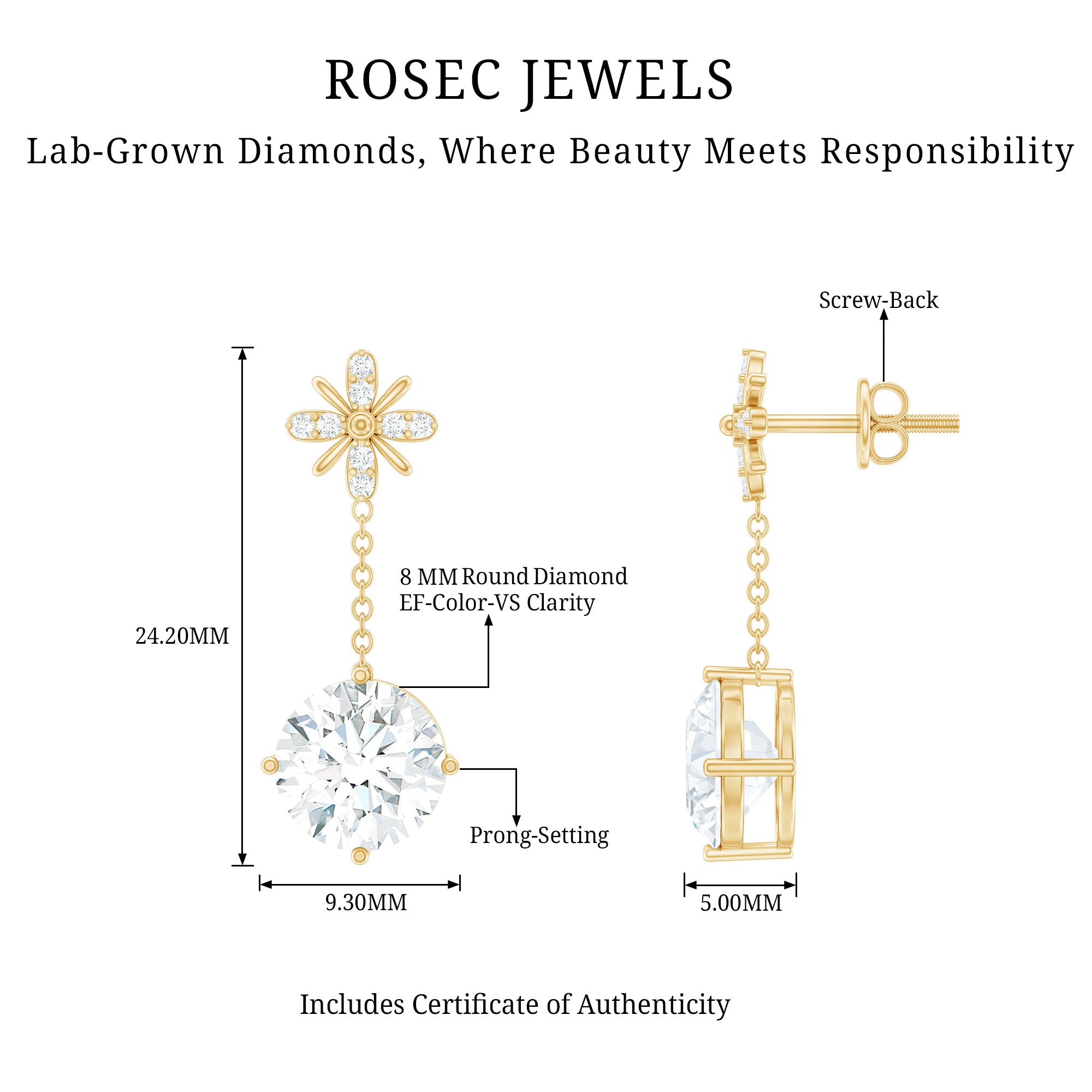 Certified 8 MM Round Lab Grown Diamond Flower Dangle Earrings