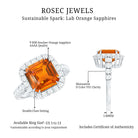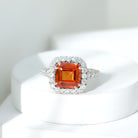 Certified 9mm Lab Grown Orange Sapphire Asscher Cut Engagement Ring with Halo