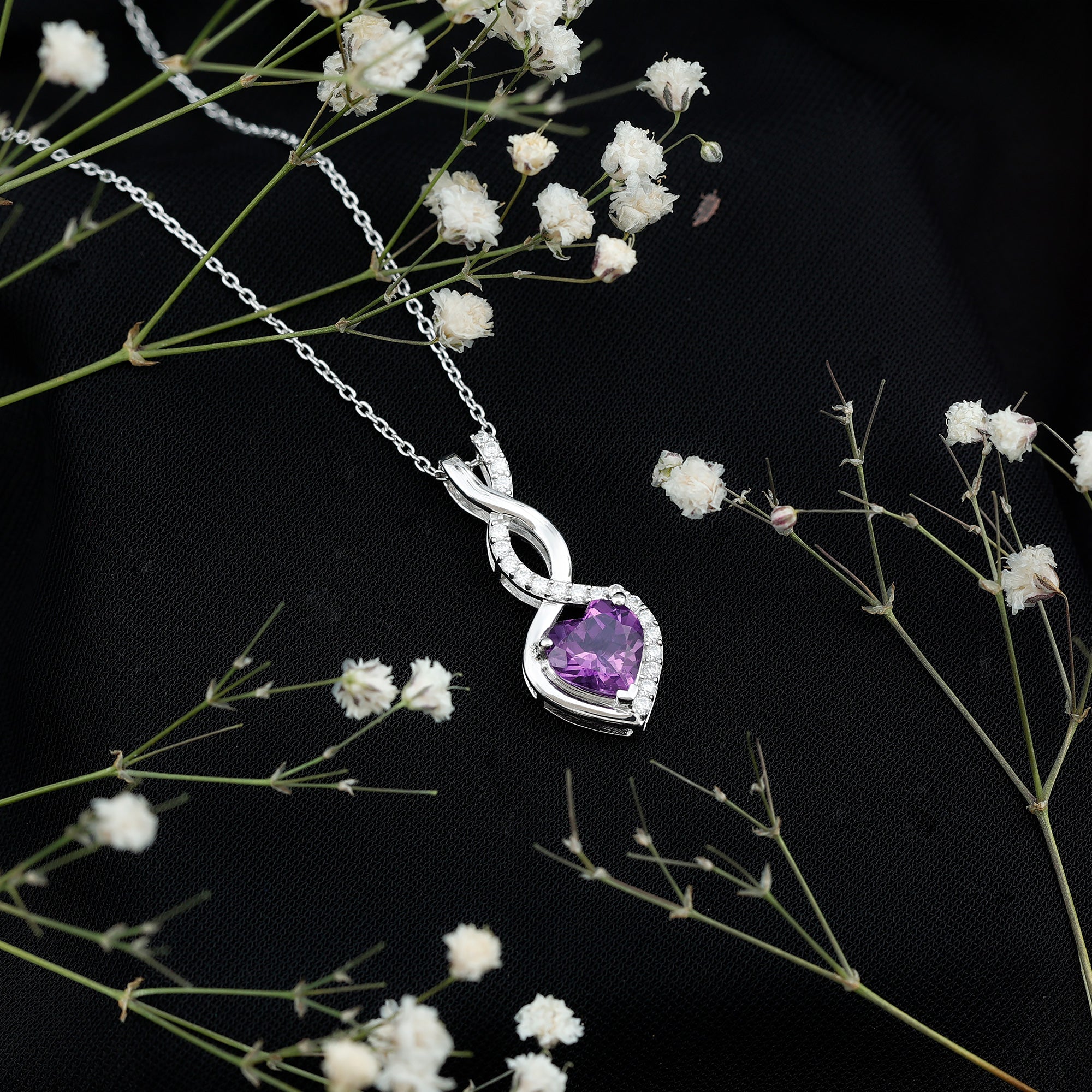 Certified Amethyst and Moissanite Infinity Heart Necklace