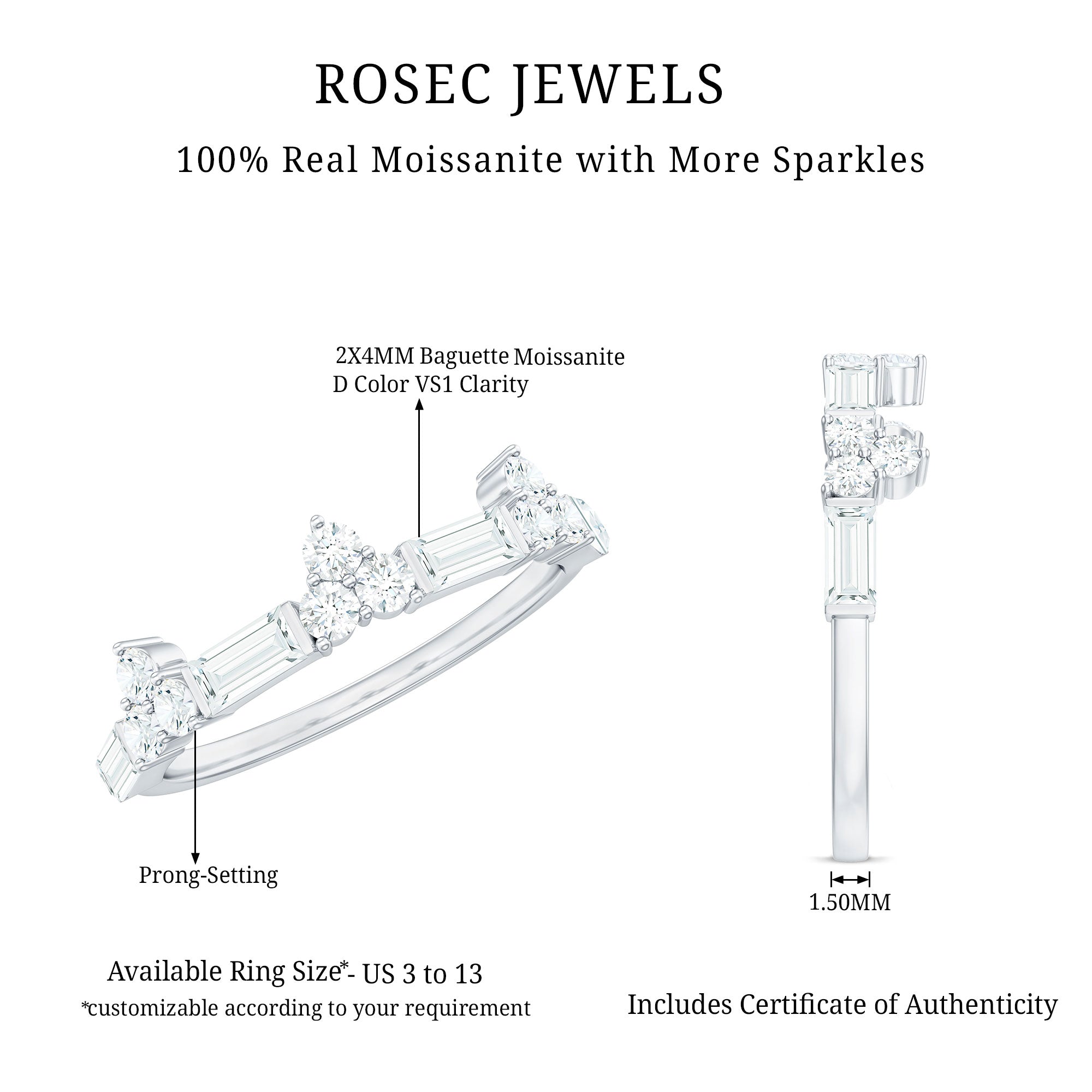Certified Baguette and Round Moissanite Half Eternity Ring