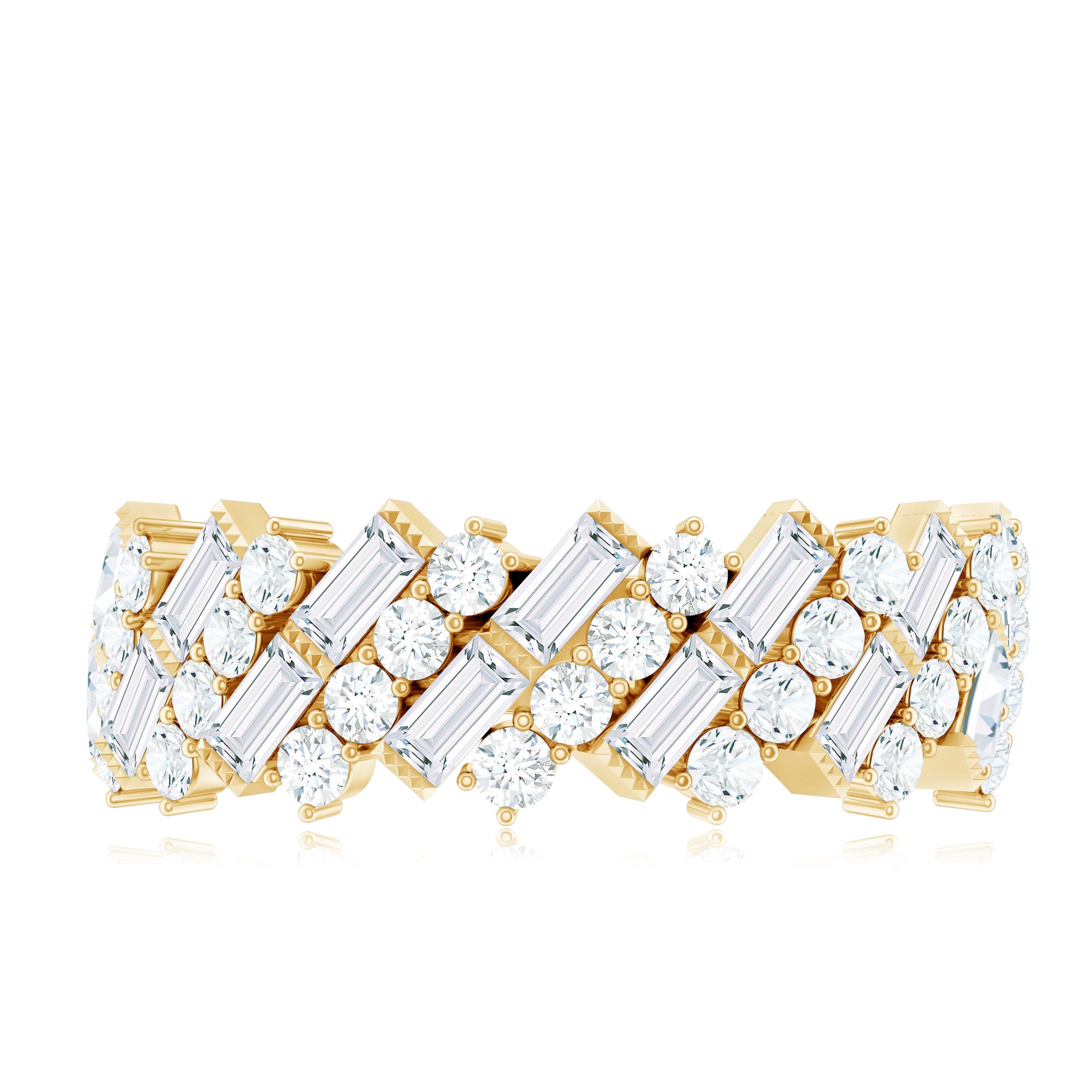 Certified Baguette and Round Moissanite Half Eternity Wedding Band