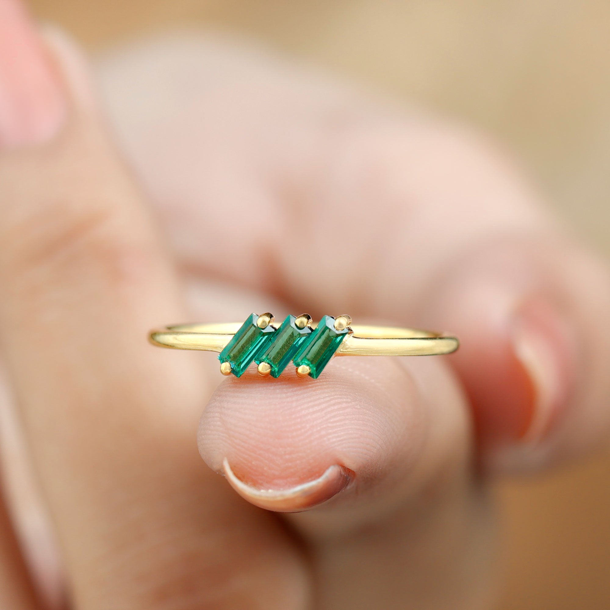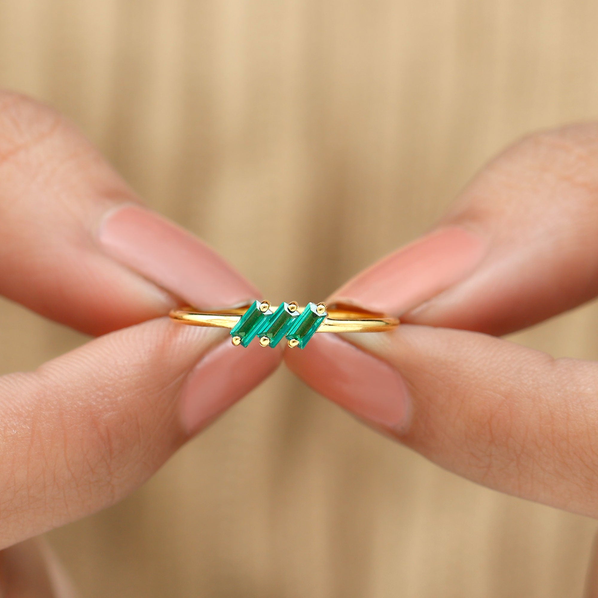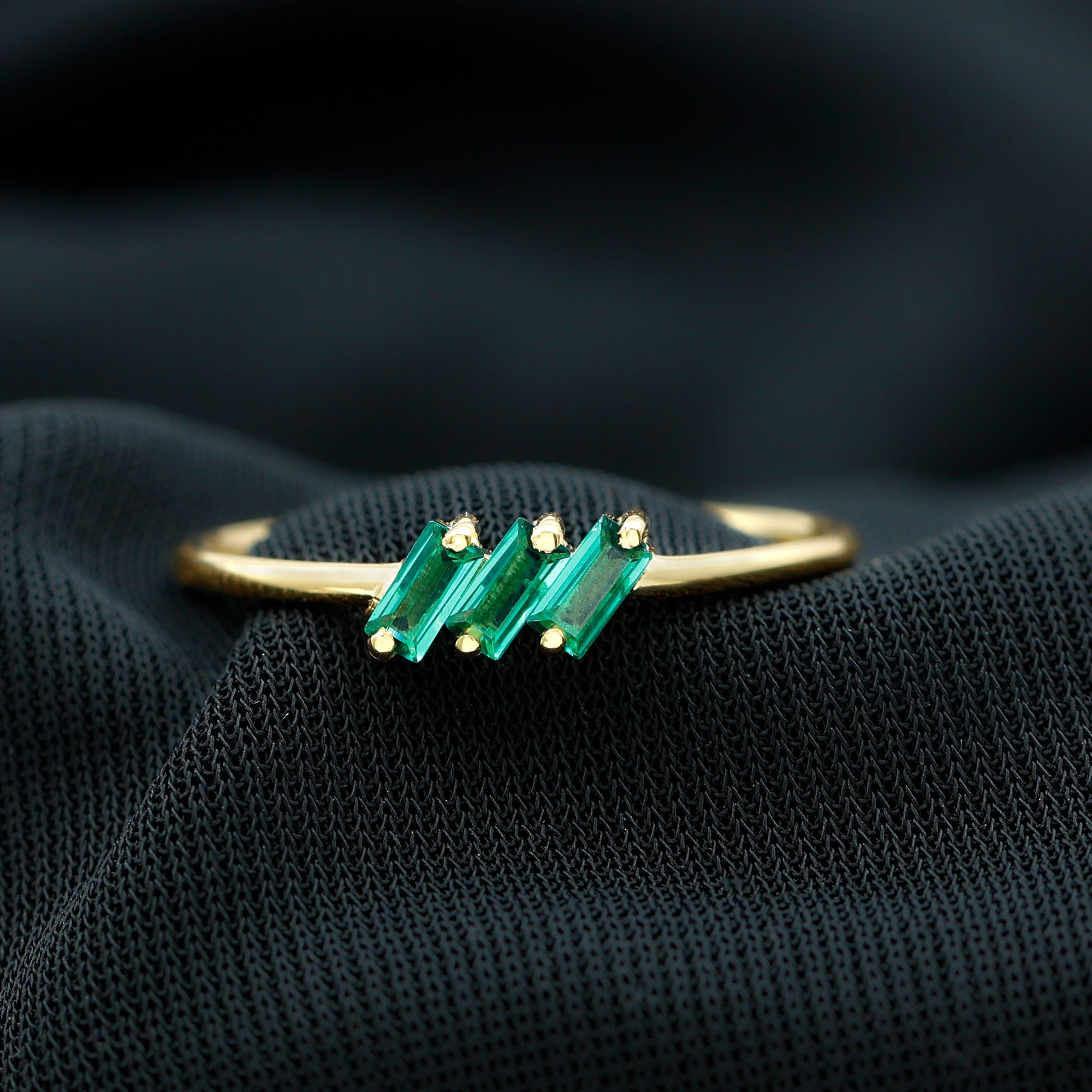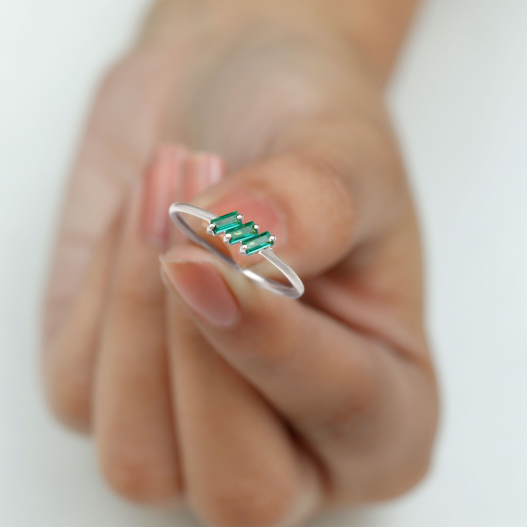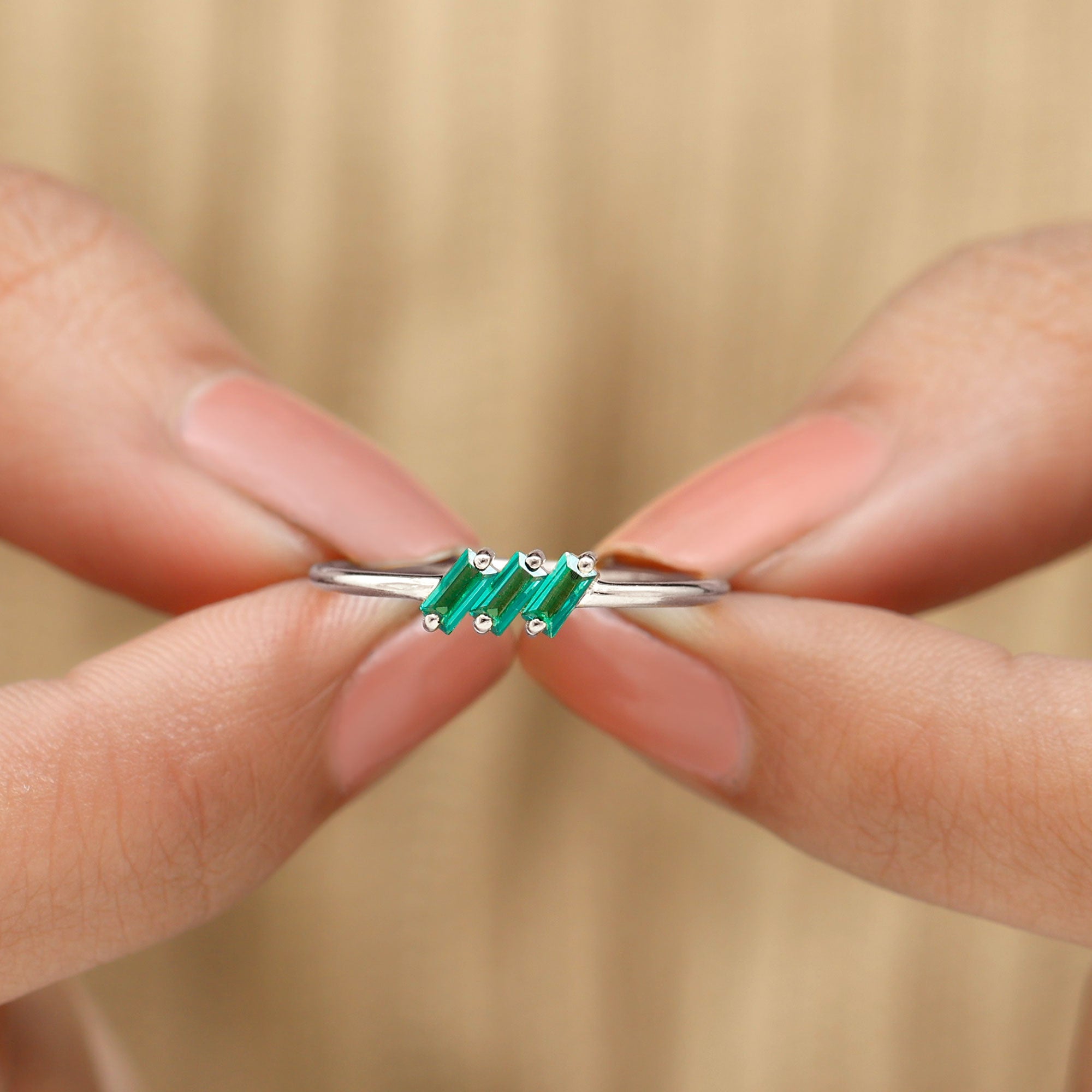 Certified Baguette Lab Grown Emerald 3 Stone Promise Ring