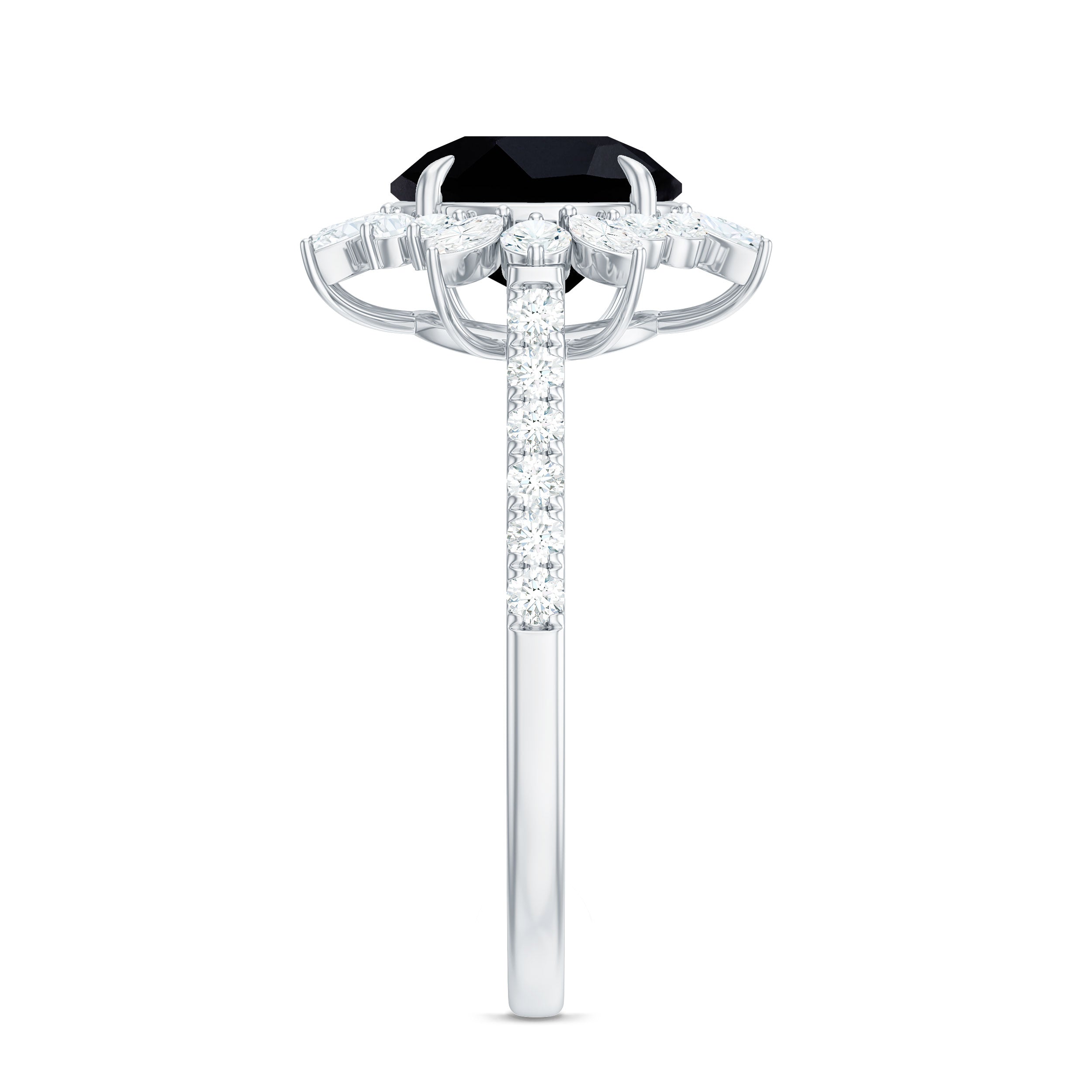 This certified black onyx and moissanite statement engagement ring is crafted for those who prefer distinctive design over traditional styles. The deep black hue of onyx creates a dramatic foundation, while moissanite introduces brilliance and light.