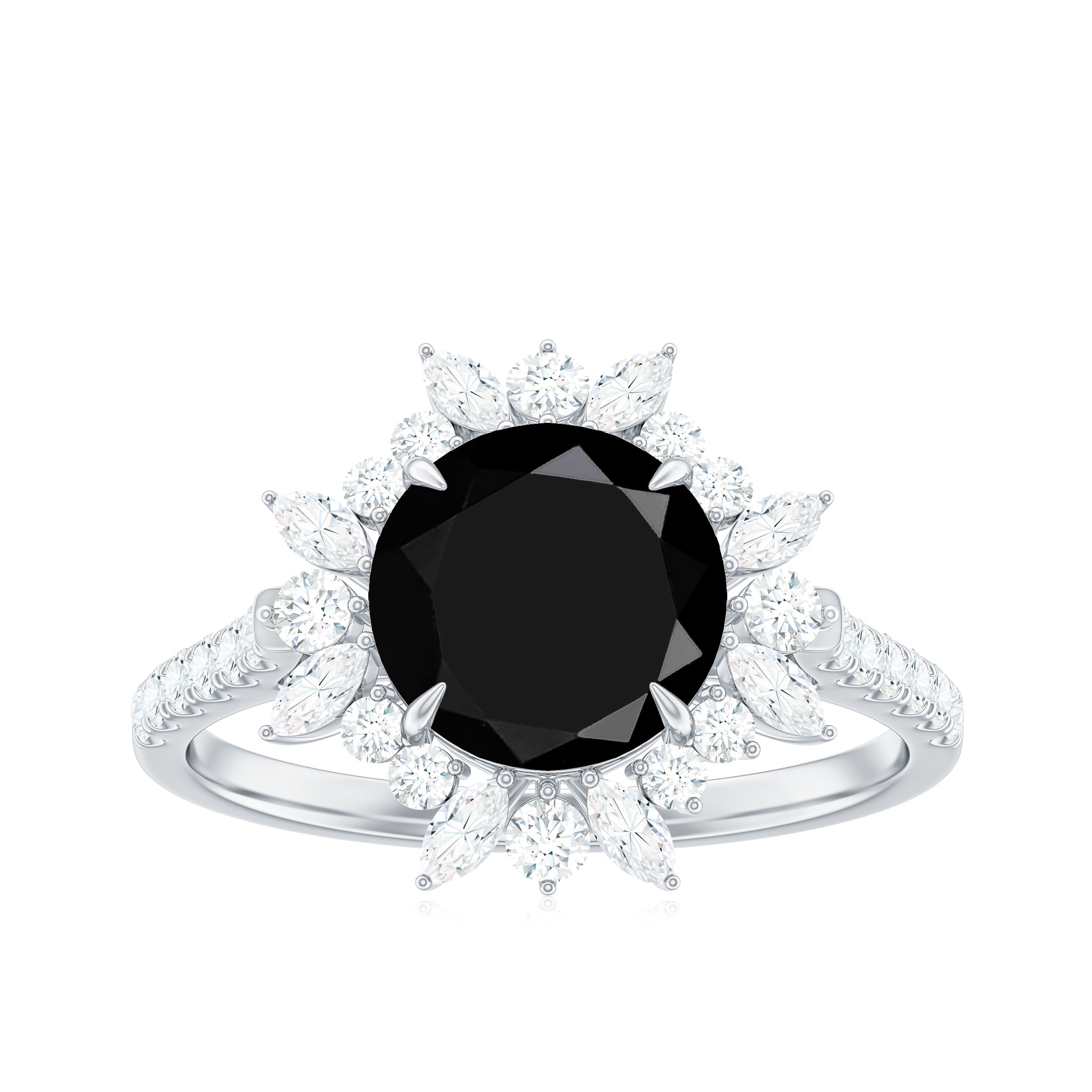 Certified Black Onyx and Moissanite Statement Engagement Ring