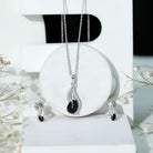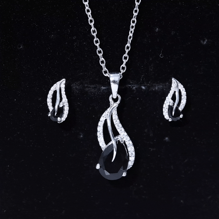 Our classic Black Onyx Necklace and Earrings Set is a masterpiece of contrast and brilliance. Crafted in 14K White Gold Plated Silver, it features a bold pear shaped black onyx set in secure prong setting, which makes a striking statement. Surrounding it is a delicate leaf like curve, lined with round cut moissanite stones that shimmer beautifully, adding the perfect touch of sparkle. The design is graceful yet striking, making it perfect for both everyday wear and special occasions. The December Birthstone Pendant with Chain has a fluid design that beautifully sits on the neck, while the matching stud earrings with screw on backs complete the set with a sophisticated charm. This Black and White Jewelry Set is not just a piece of jewelry it is a statement of elegance that lasts forever.