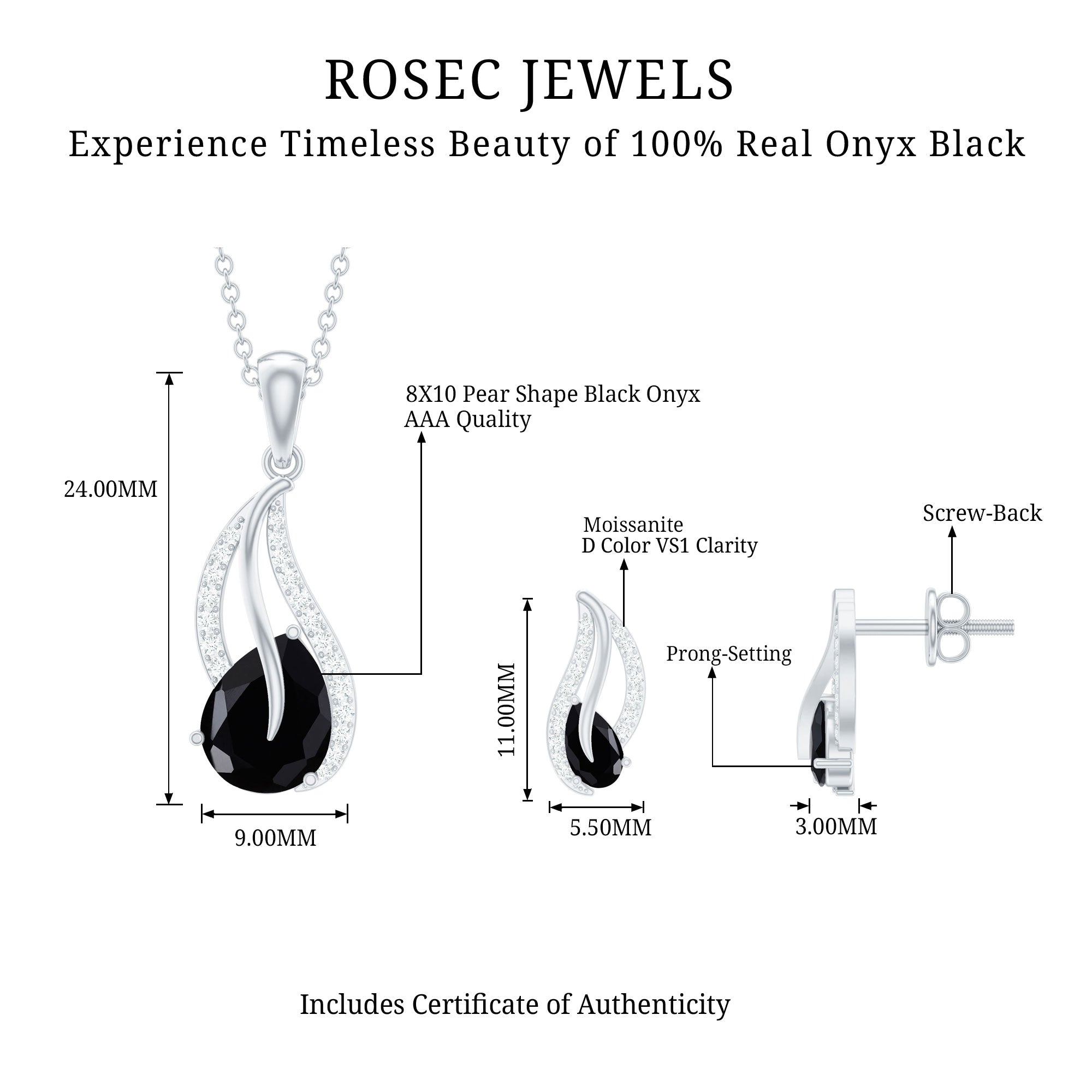 Certified Black Onyx and Moissanite Teardrop Jewelry Set