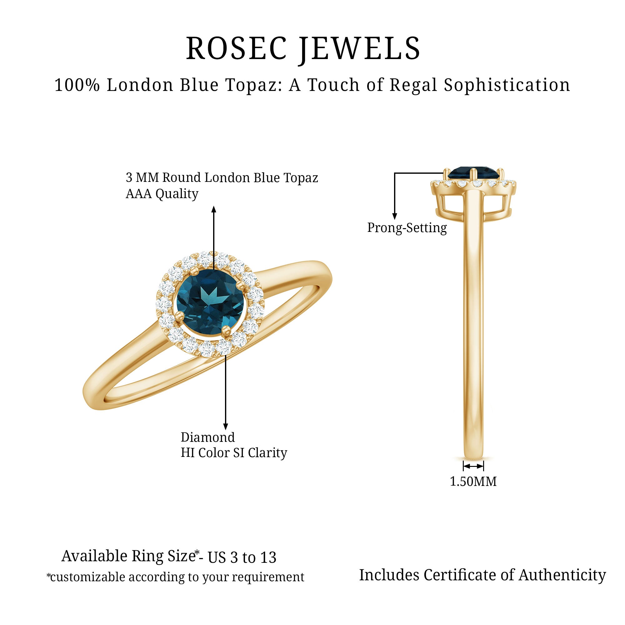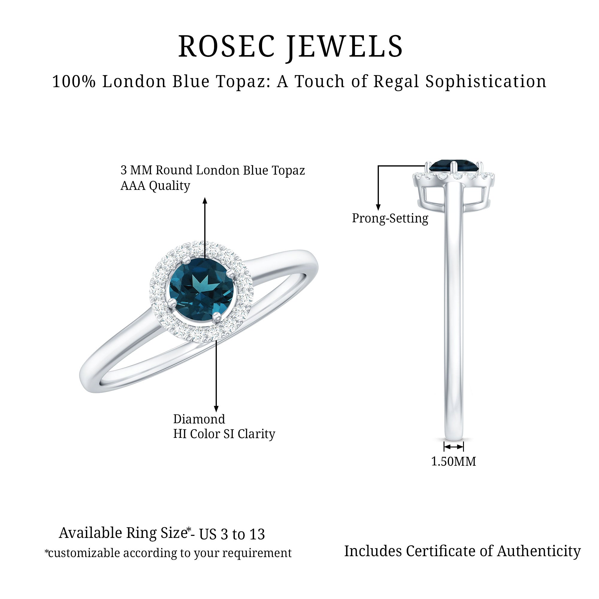 Looking for something minimalist and meaningful, this London Blue Topaz Promise Ring is the kind of piece you will want to wear every day. It is simple, stylish, and has just enough sparkle to catch the light. At the center, there is a dainty 3 MM round cut london blue topaz held in prong setting. Around it, a floating halo of tiny diamonds adds that perfect touch of shine, giving the Blue Topaz Halo Ring a soft and elegant glow. It is a design that feels light and easy but still looks like you put thought into it. The band is smooth and slim, making it super comfy to wear from casuals to formals. Everything about this Blue Topaz and Diamond Ring says quiet confidence and effortless style. Made with AAA quality London Blue Topaz and HI-SI quality diamonds, it is a solid piece that is crafted to last. If you are marking a special promise or just want a little everyday sparkle, this Promise Ring for Her is a lovely reminder of something close to your heart. No big statements, just a beautiful little moment you can wear on your finger.
