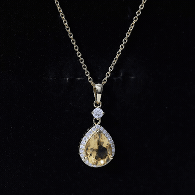 Certified Citrine and Diamond Teardrop Pendant Necklace with Silver Chain