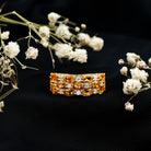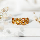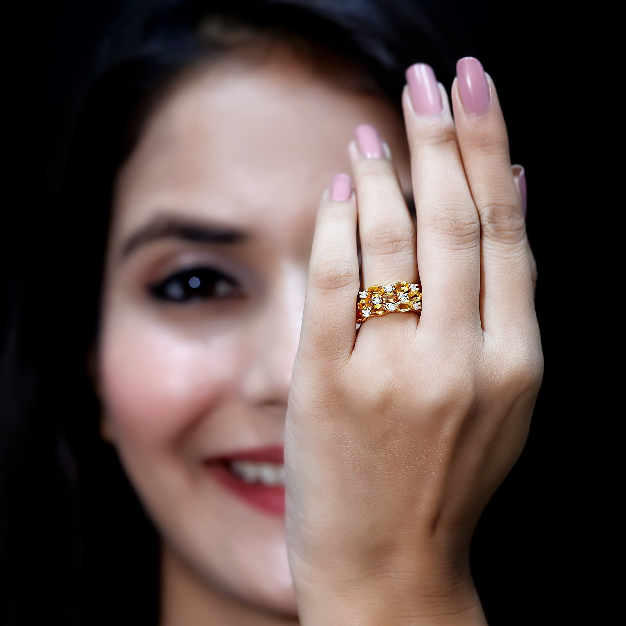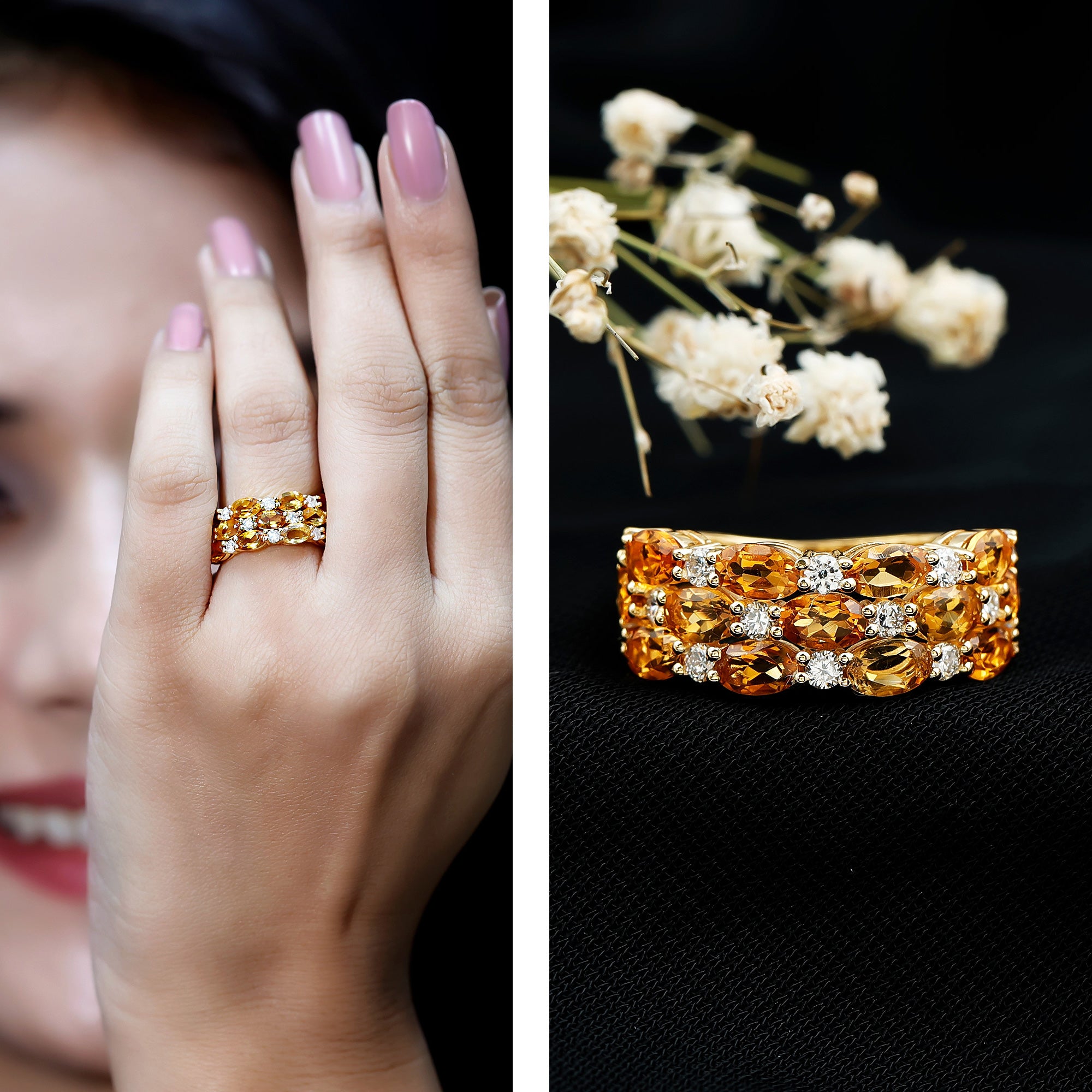 Our Citrine Eternity Band is a ring that makes a bold statement without trying too hard, it is all about unique design and everyday elegance. Whether you are dressing up for a special event or just want to elevate your daily style, this piece offers a perfect mix of modern detail and timeless appeal. Designed in 14k yellow gold plated silver, this Wide Band features three rows of a striking combination of oval cut citrine gemstones placed horizontally and round cut lab grown diamond. The three row design stands out effortlessly, making this Citrine and Diamond Band ideal for those who like their jewelry with a little more personality. Each detail, from the setting style to the polish of the band and the contrast of the stones, has been carefully considered to ensure both beauty and comfort. Perfect as a Statement Ring, anniversary gift, or even an unconventional wedding band, this piece speaks to confidence and individuality. It is made for the one who is not afraid to stand out while keeping things stylish and elegant. With its unique layout and meaningful craftsmanship, this Half Eternity Band is a piece that reflects strength, grace, and a love for beautiful design.